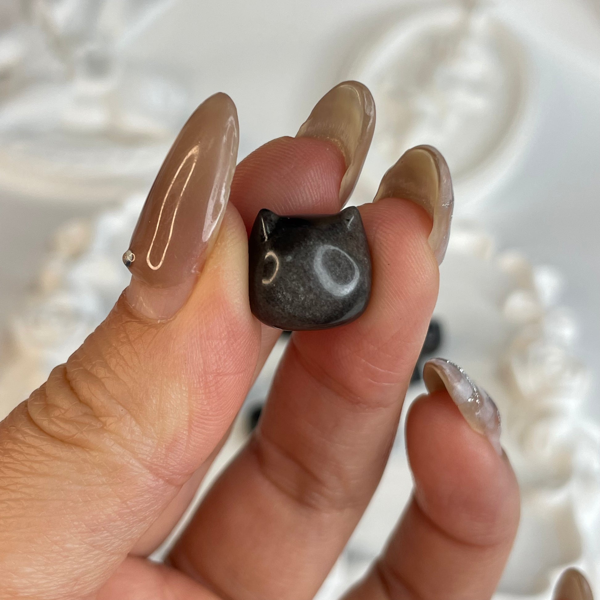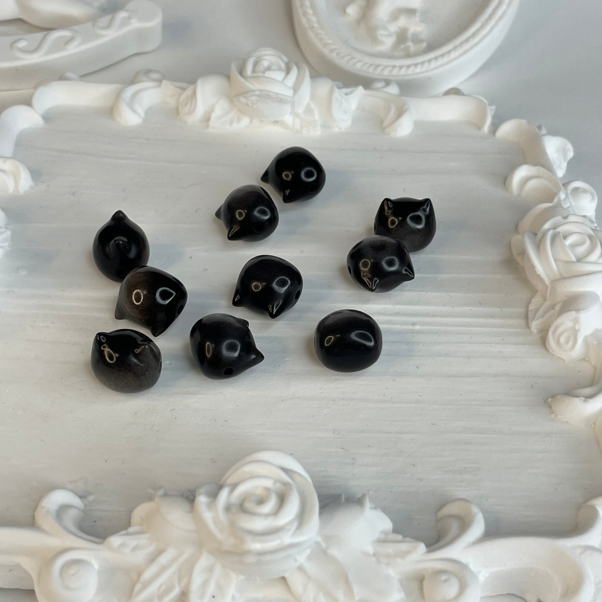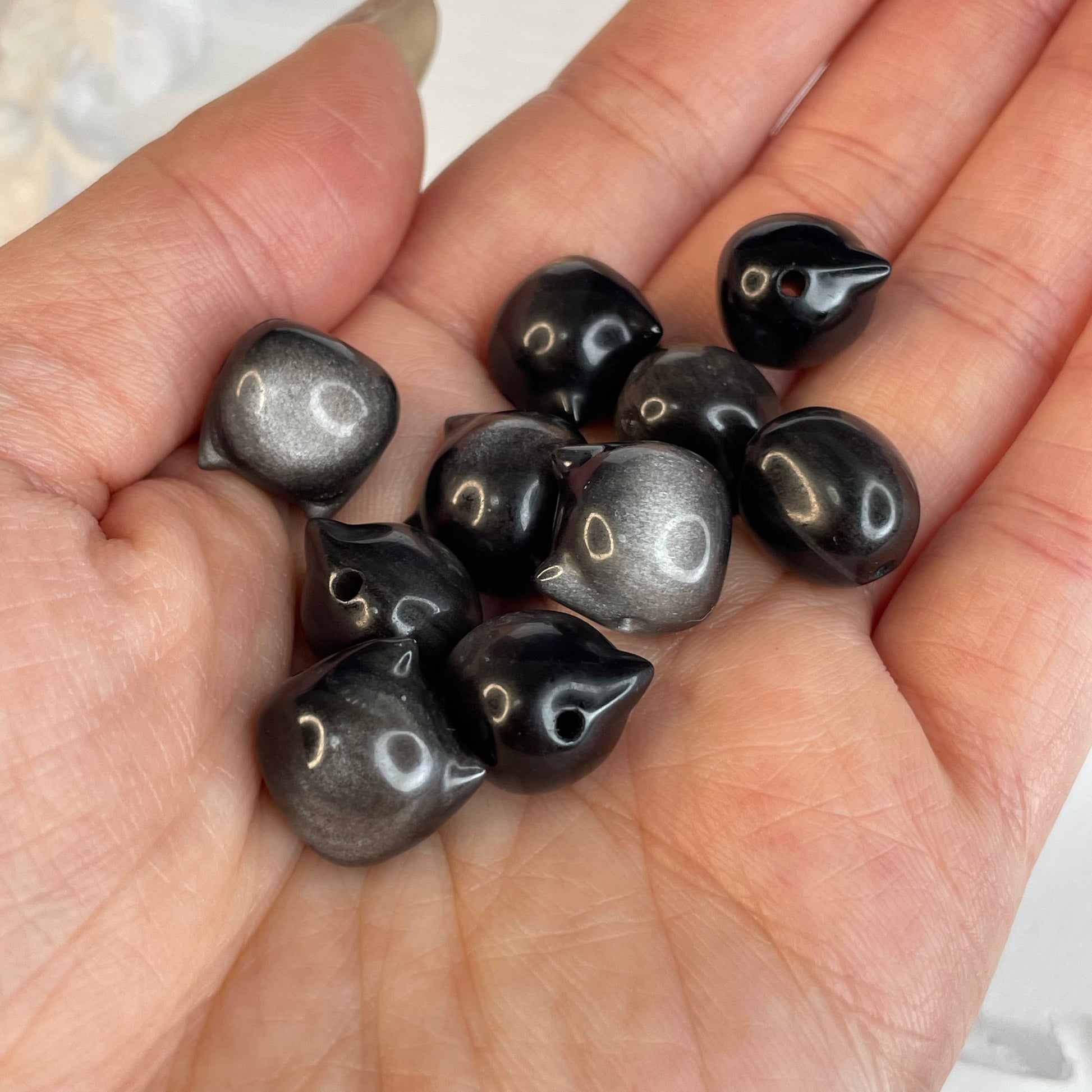 Add a little magic and mystery to your creations with these adorable silver obsidian cat beads. Each one is hand-carved with sweet rounded features and subtle silver shimmer that dances in the light — a perfect blend of cute and powerful.