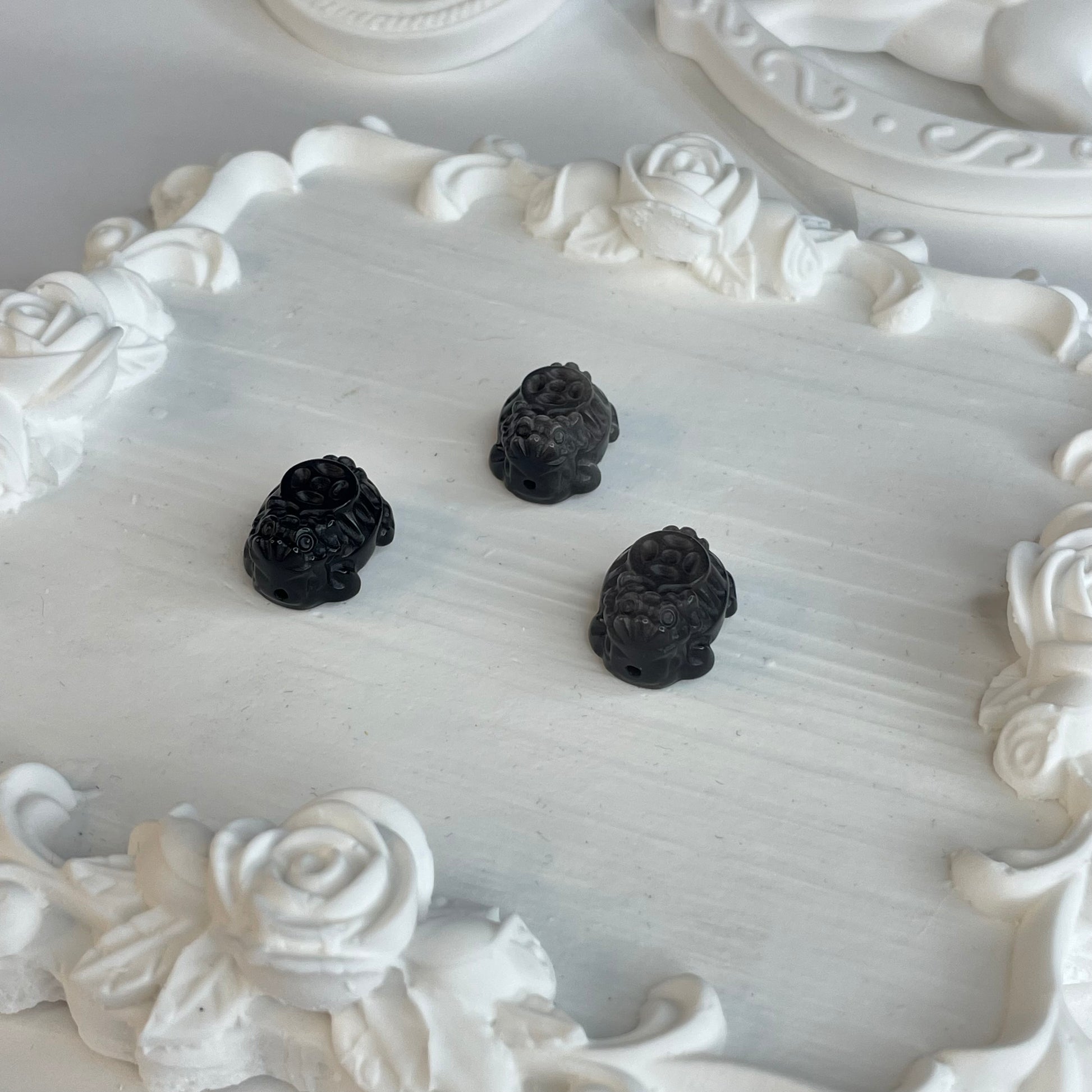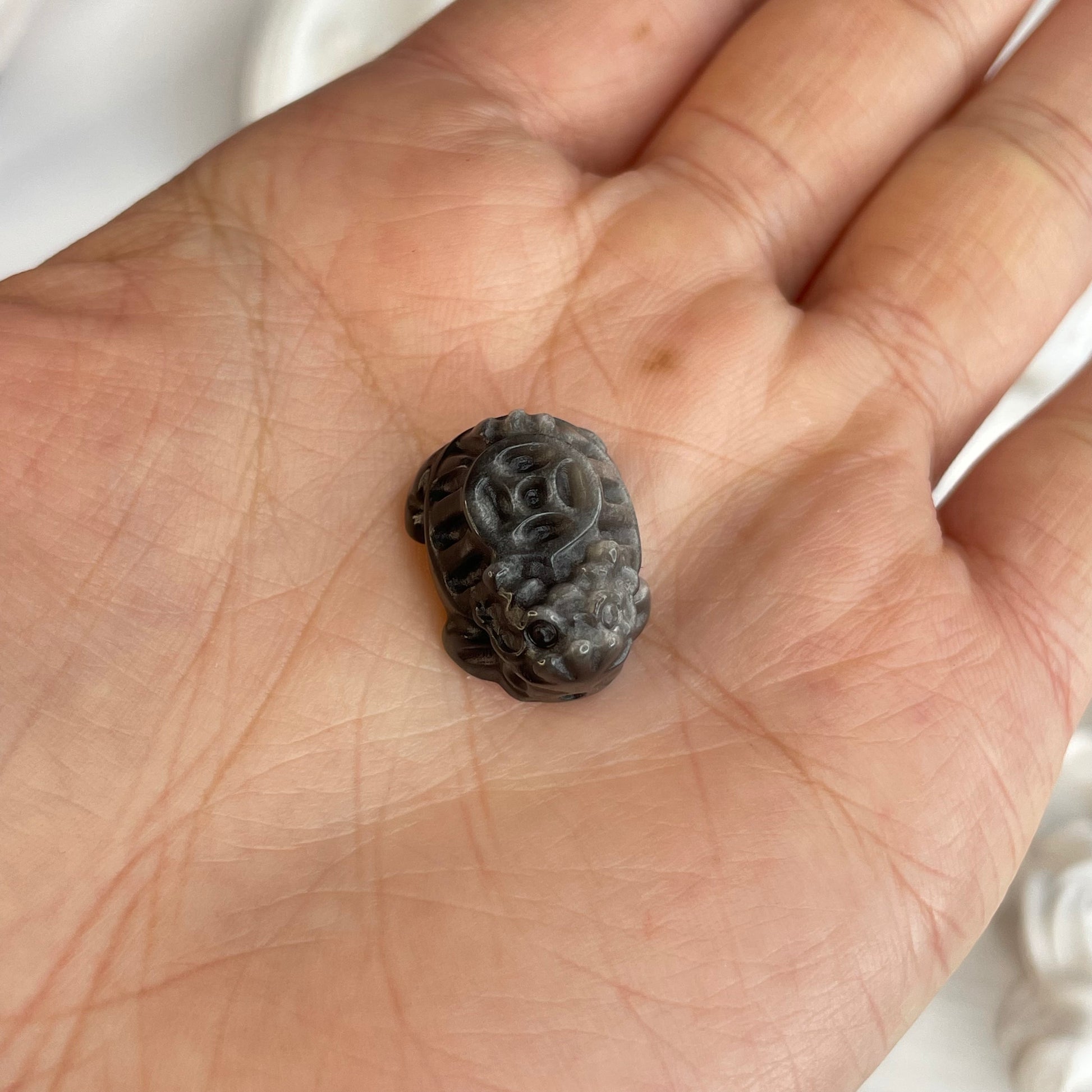 In Feng Shui, the Dragon Turtle symbolizes longevity, strength, and prosperity. These beads are hand-carved from natural silver sheen obsidian with a subtle silver glow and detailed craftsmanship. Each piece is drilled for easy use in jewelry or spiritual crafts.