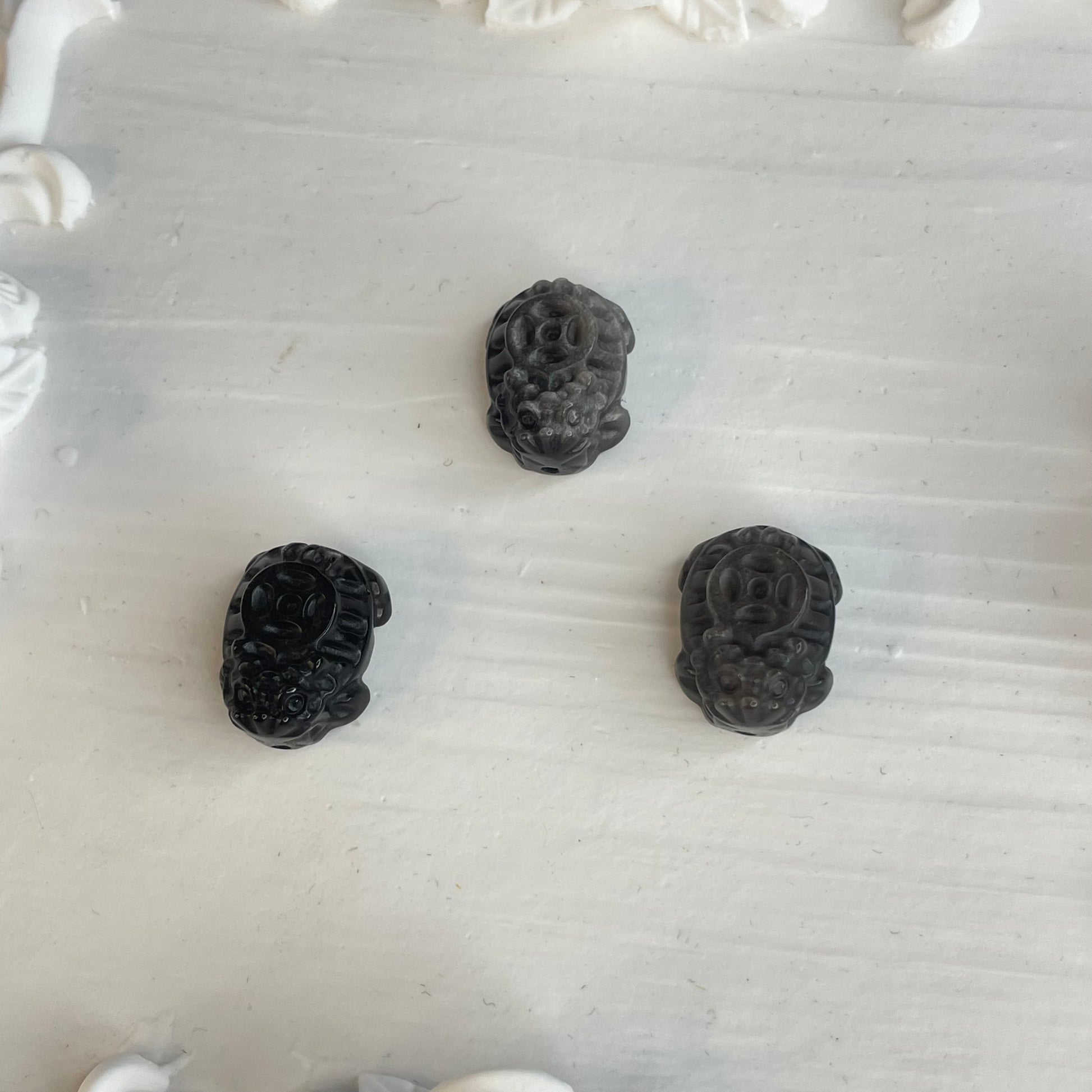 3pcs Silver Sheen Obsidian Dragon Turtle Beads | 14×19mm | Feng Shui Totem for Protection & Wealth