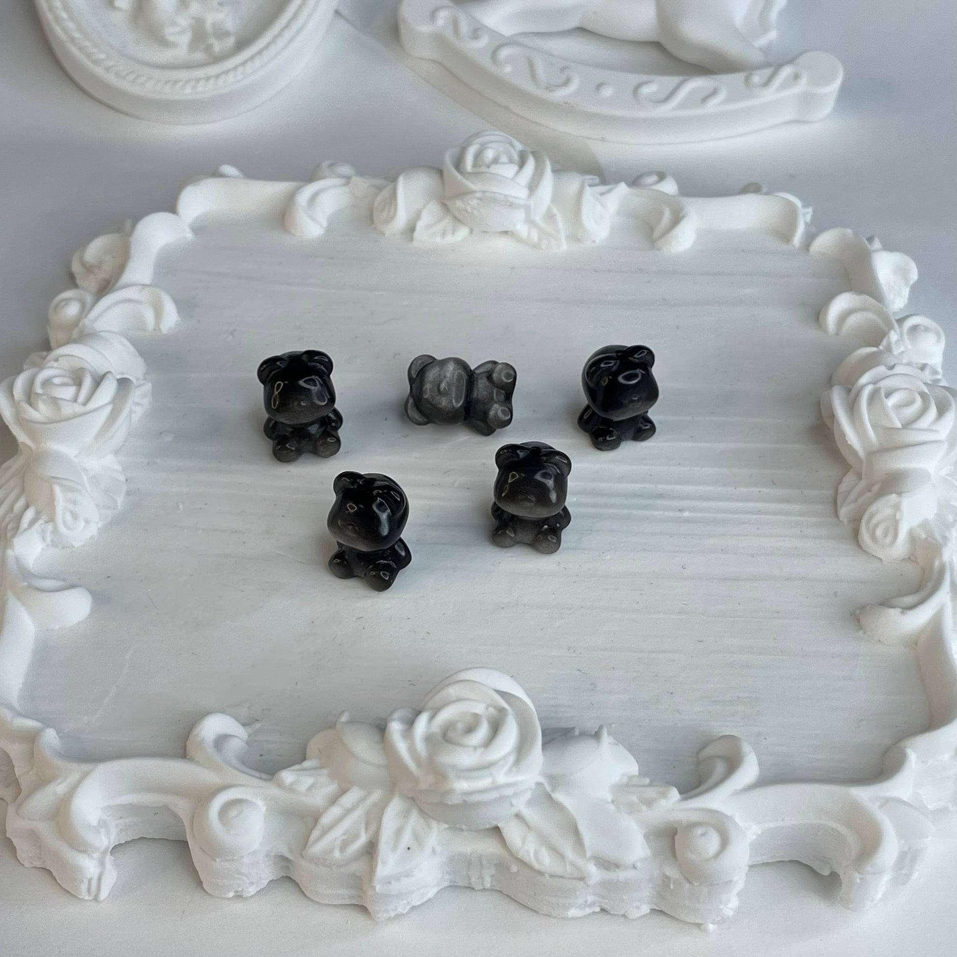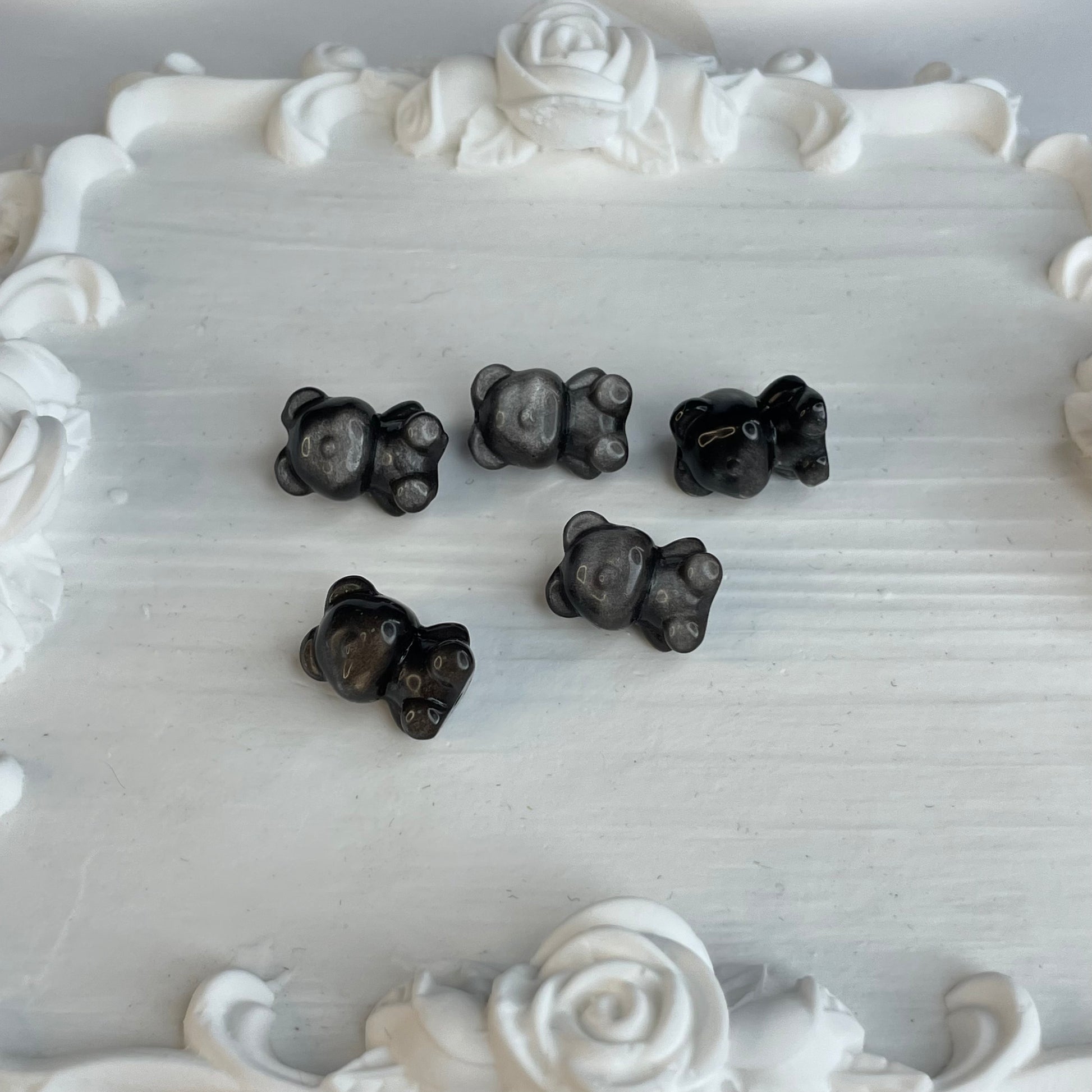 5pcs Silver Sheen Obsidian Carved Bear Beads | 16x12mm Mini Crystals for DIY