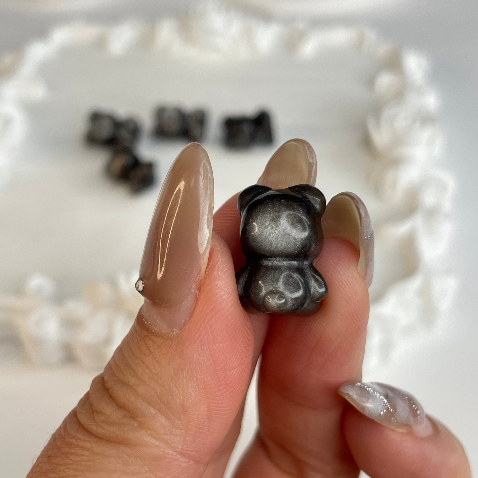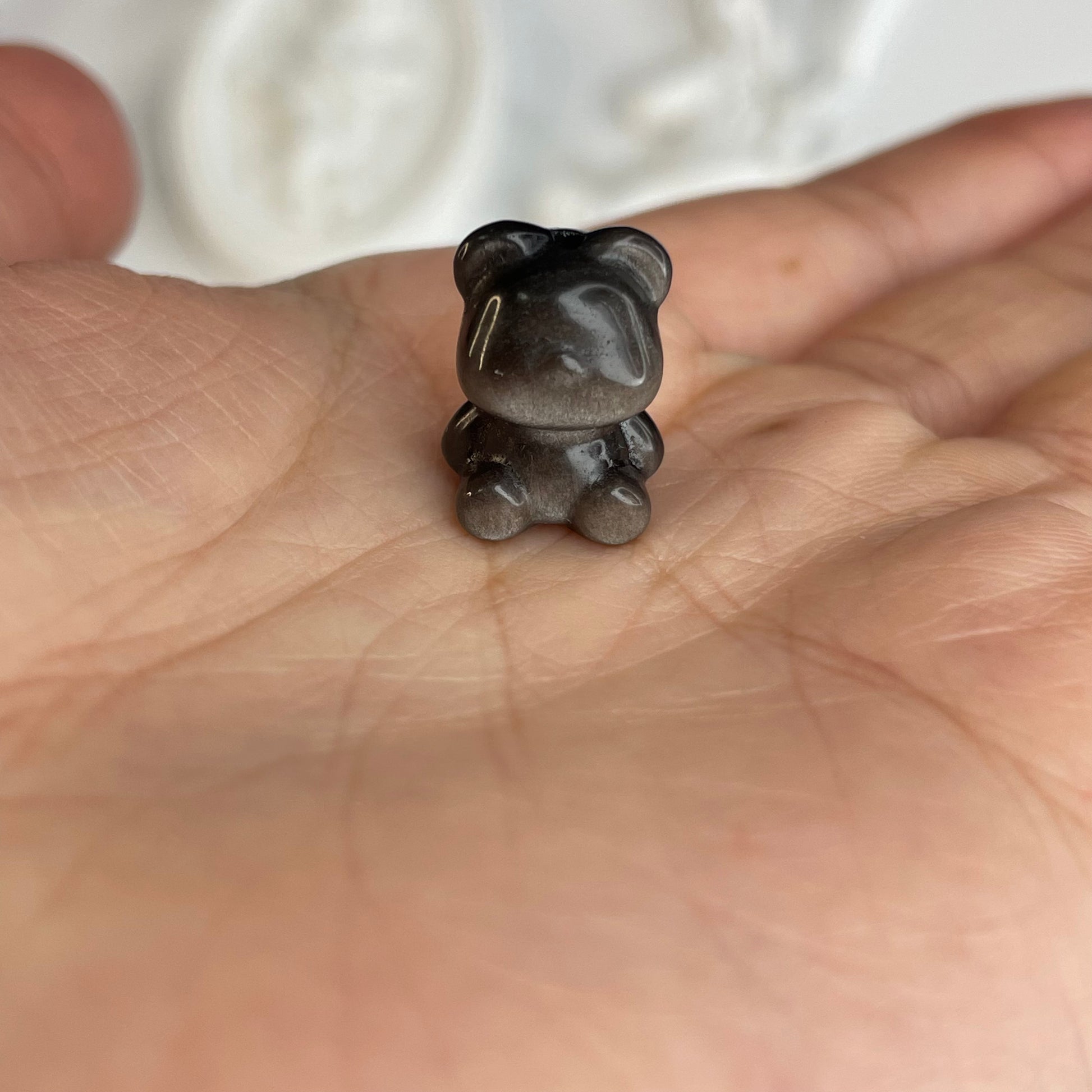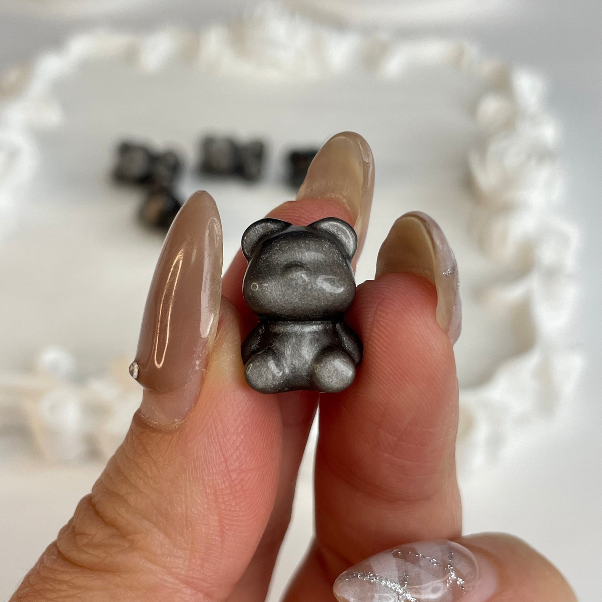 These adorable bear-shaped beads are hand-carved from natural Silver Sheen Obsidian, known for its shimmering silver glow under the light. Ideal for crystal jewelry making, charm bracelets, pendants or even decor.