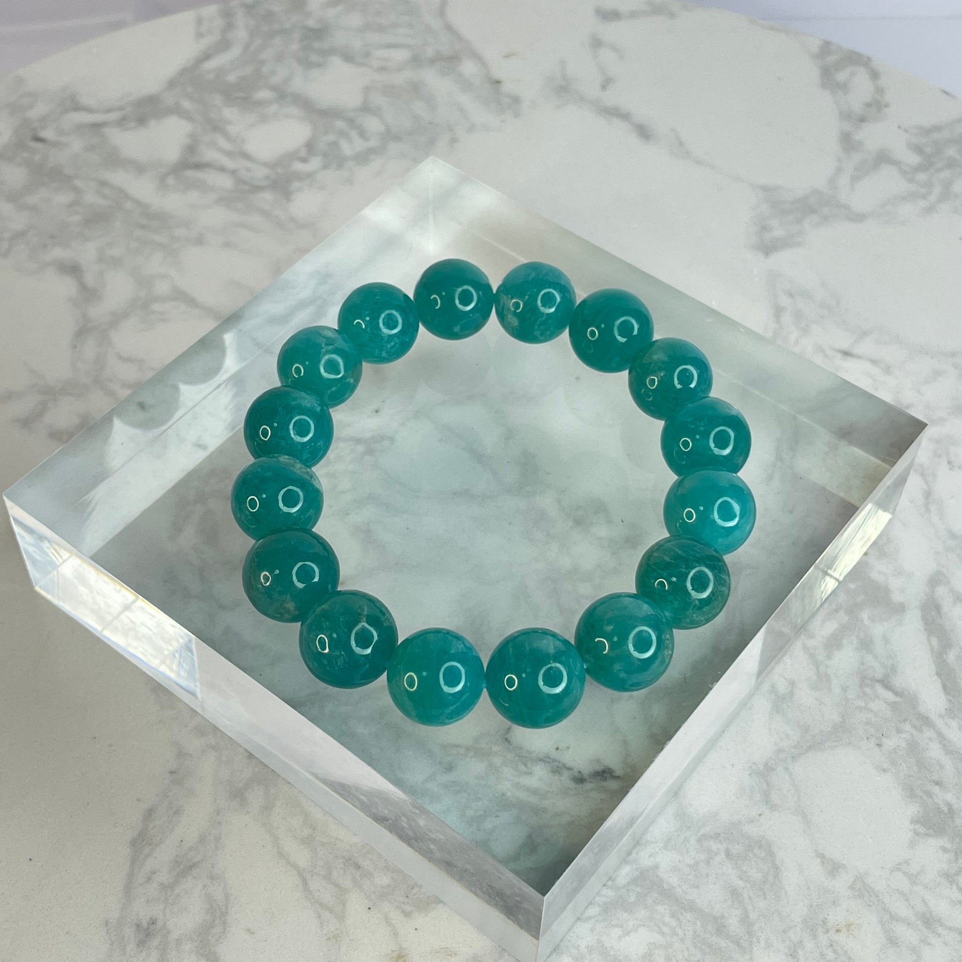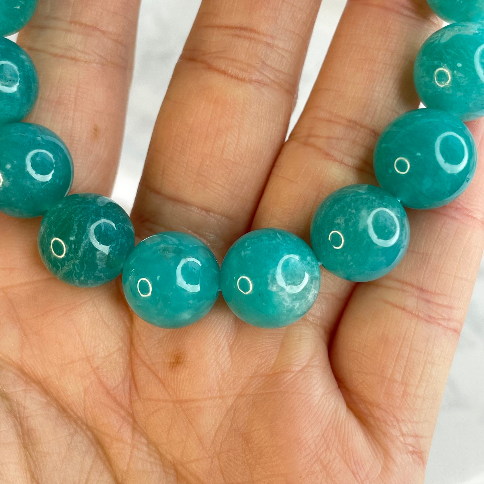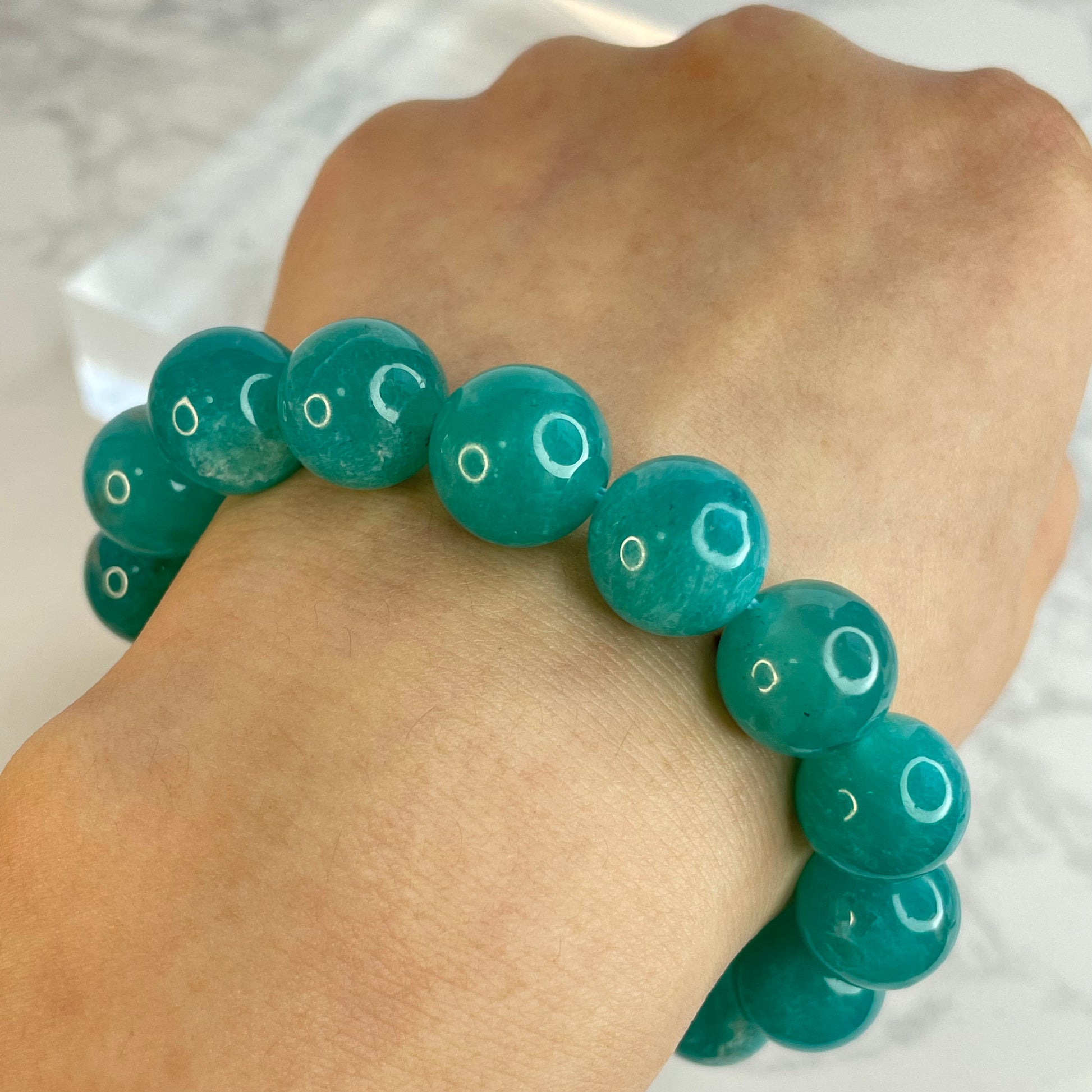 The “Ocean Heart” Amazonite Bracelet features bold 12mm beads in a soothing sea-green hue, offering strong calming and heart-soothing energy. Amazonite is known for promoting clear communication, emotional healing, and inner peace. This bracelet is perfect for those seeking balance, courage, and truth.