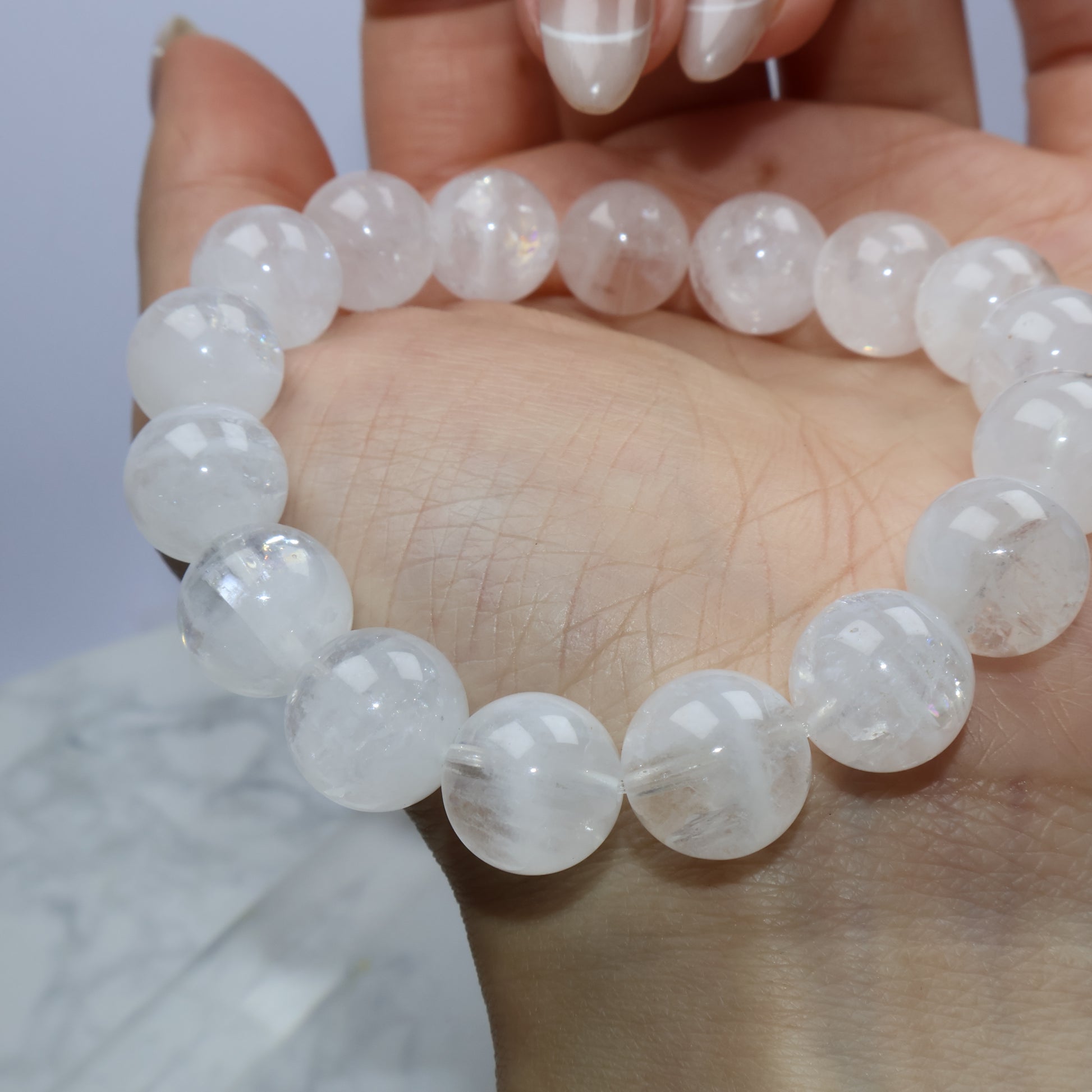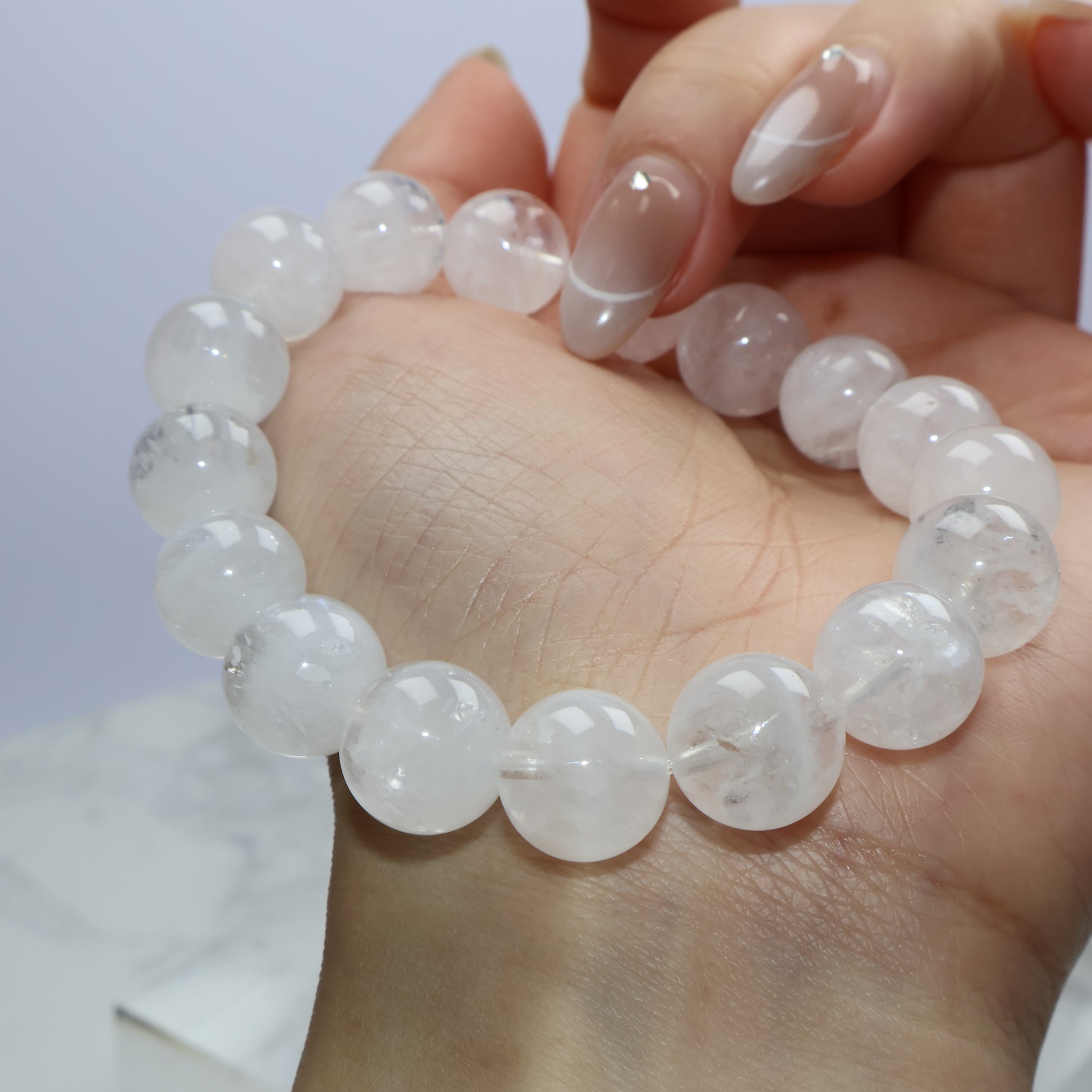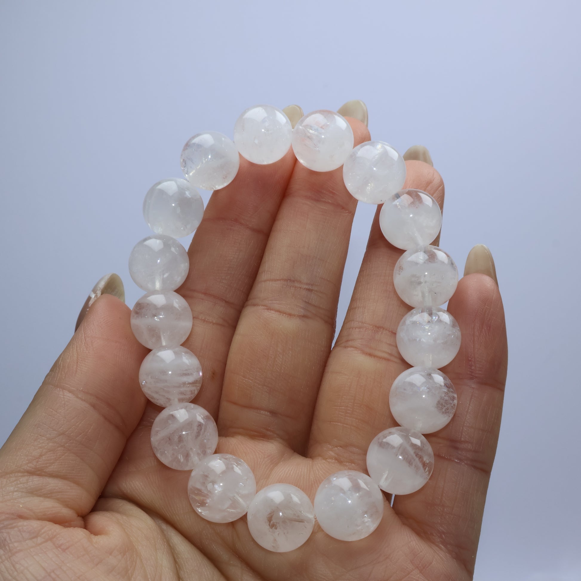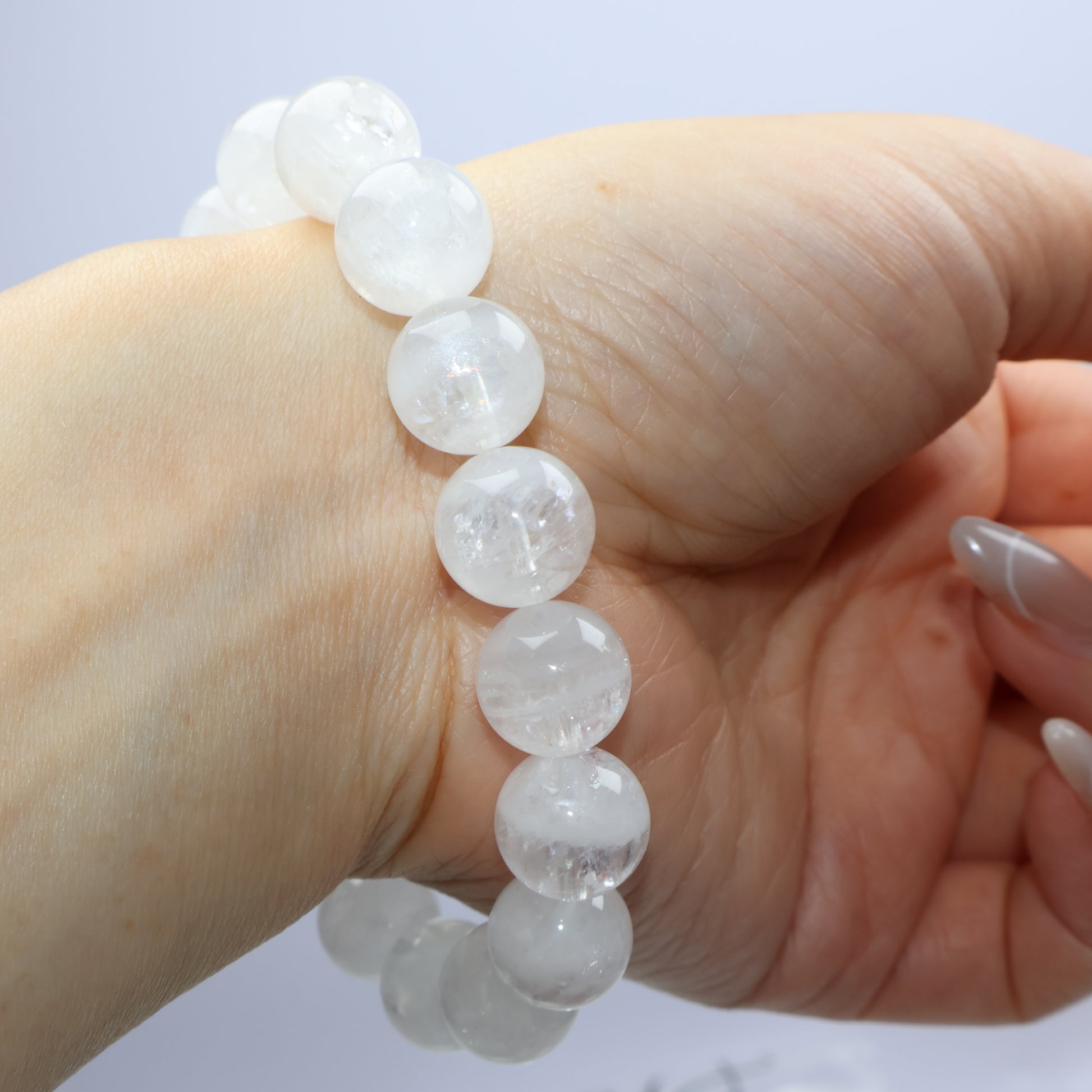 Clarity Veil White Phantom Quartz Bracelet 白幽靈水晶手串 – 11.7–12.2mm(Brazil 巴西)