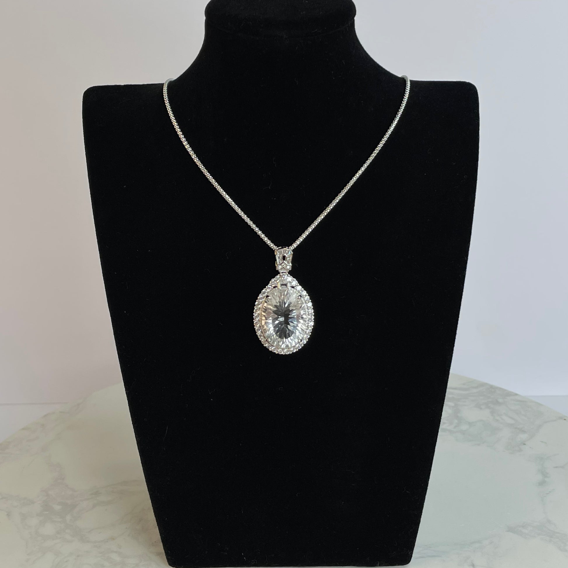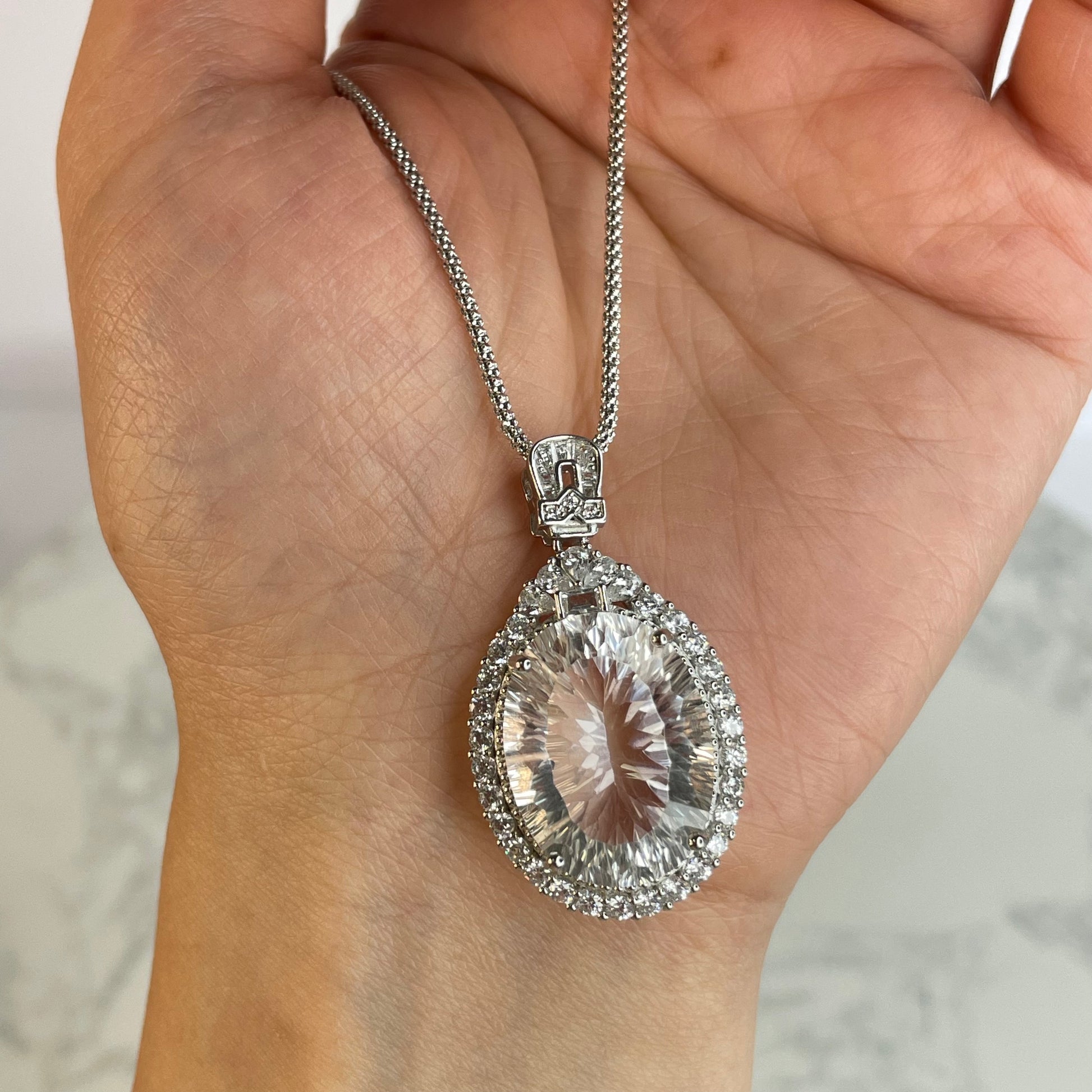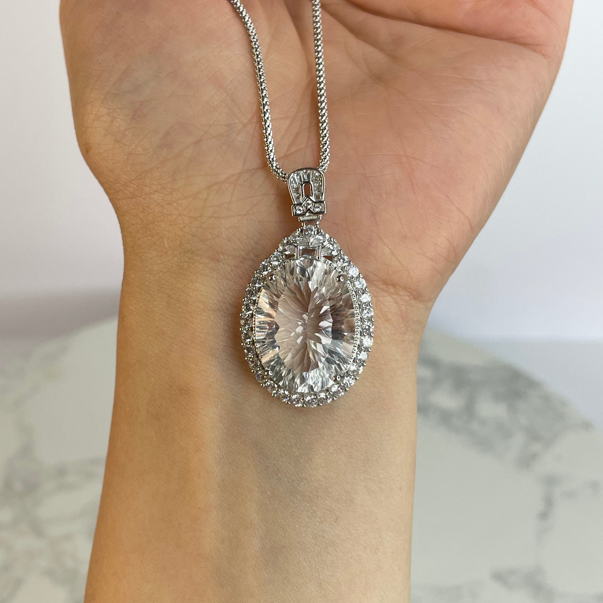 This radiant pendant features a stunning clear quartz crystal as the centerpiece, precision-cut to highlight its natural brilliance. Set in 925 sterling silver and framed with sparkling cubic zirconia, the teardrop shape enhances elegance and clarity. A timeless piece that amplifies energy, purity, and protection.
