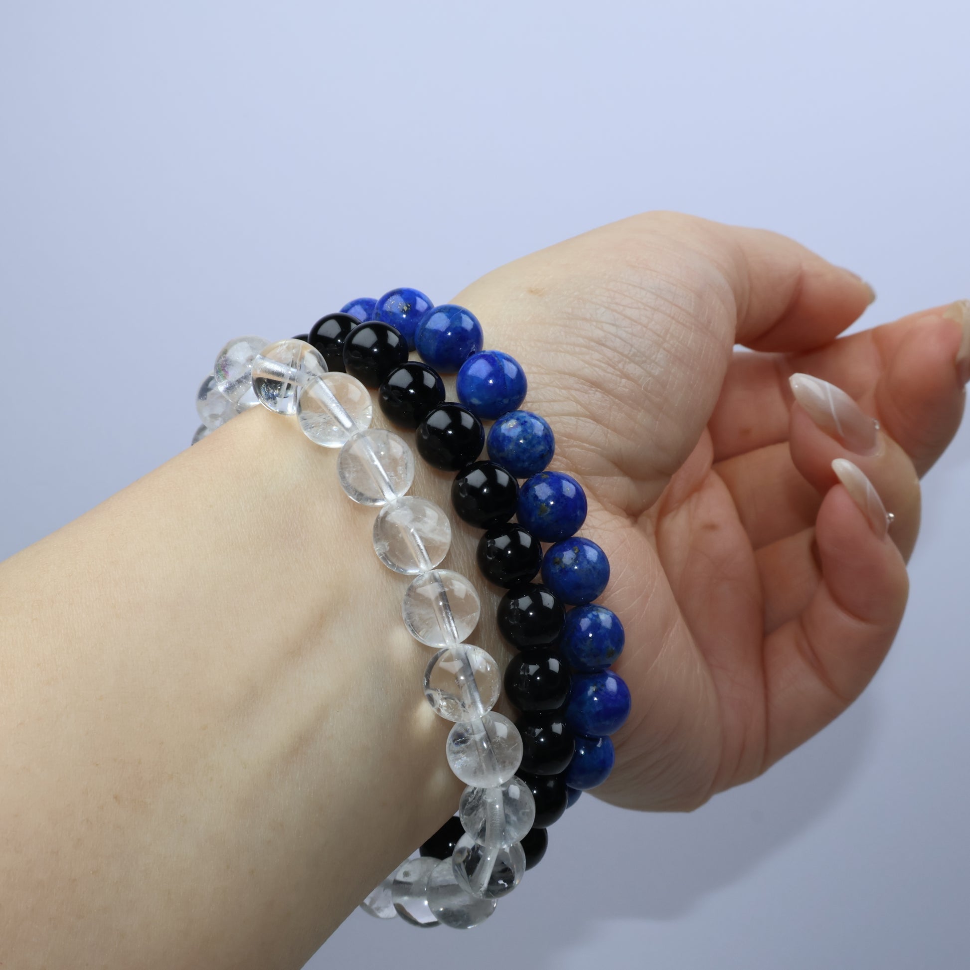 入門水晶三件組 – 白水晶、青金石、黑曜石(7mm珠)
