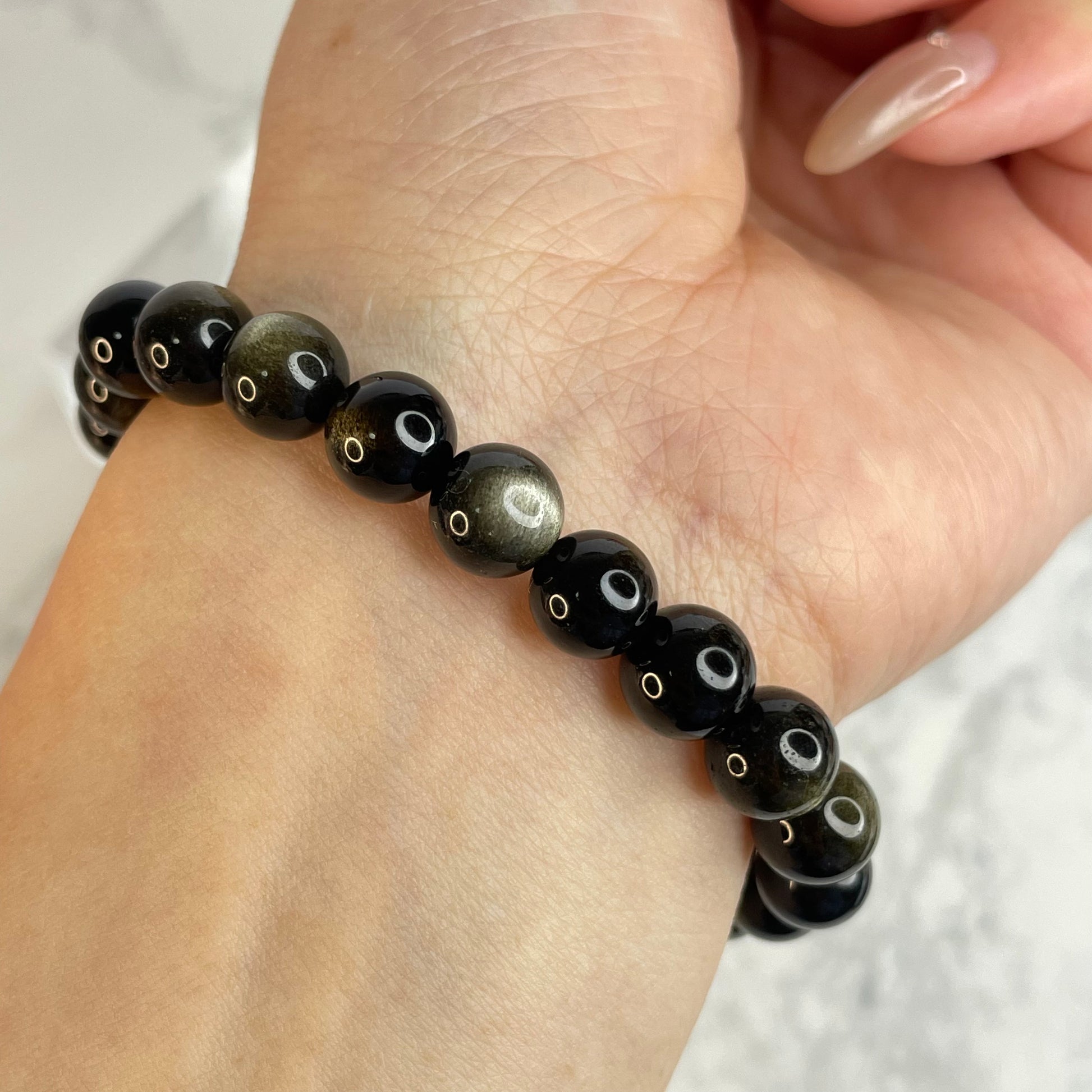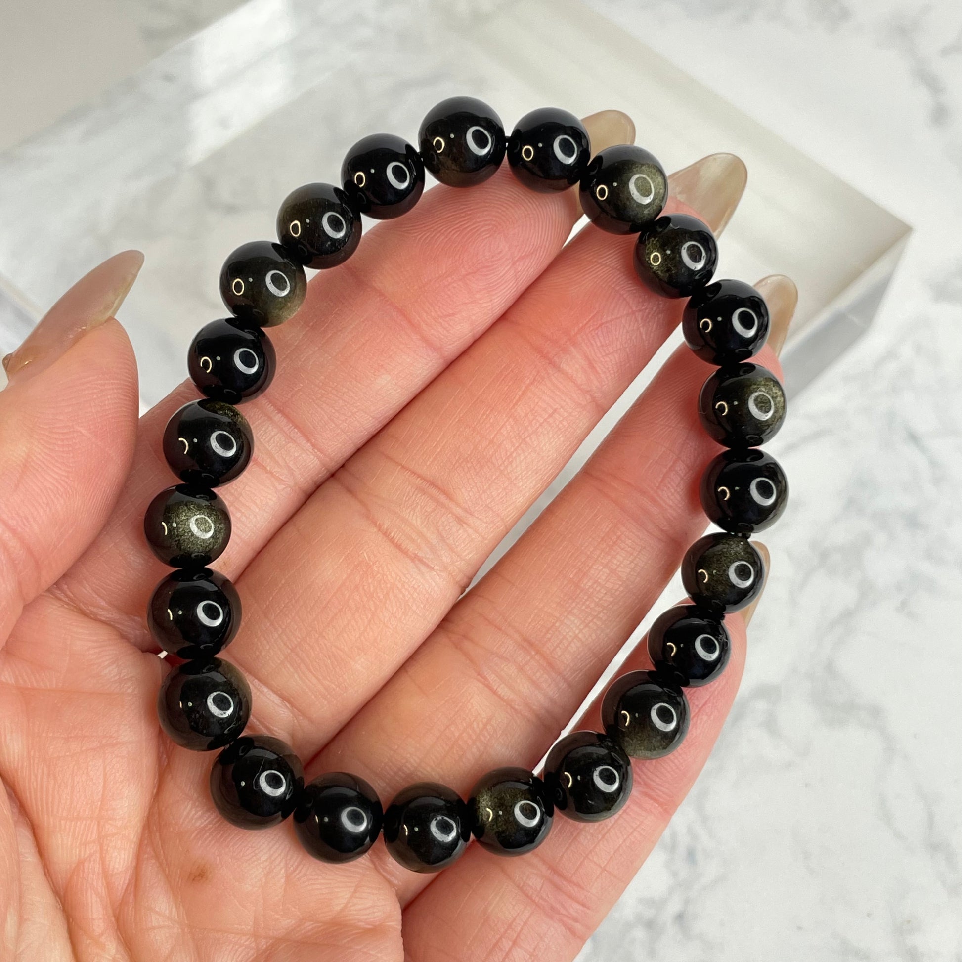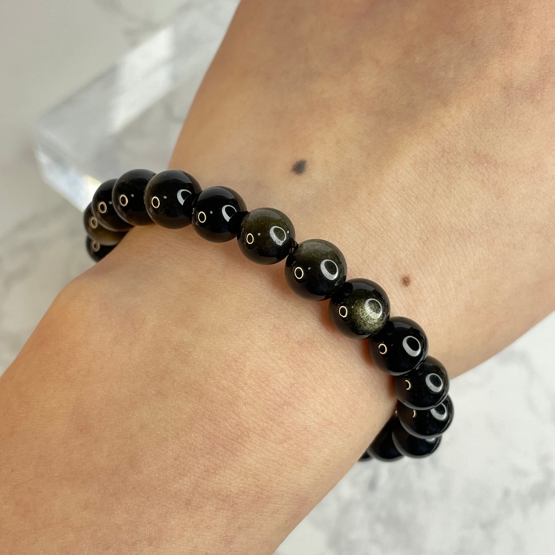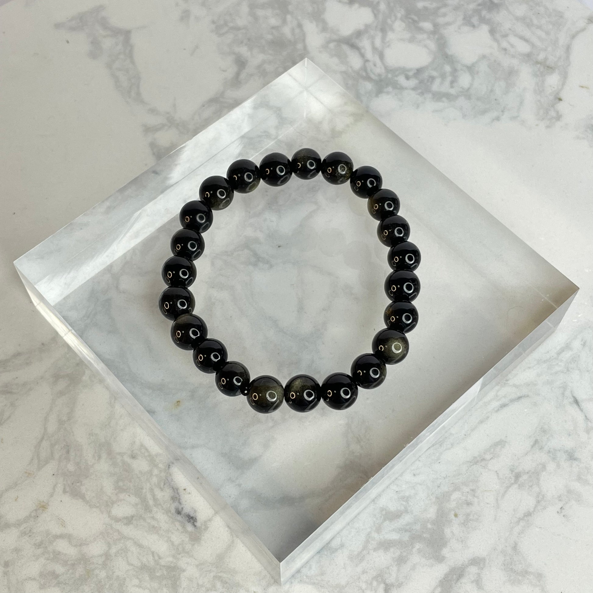This 8mm Golden Sheen Obsidian bracelet features deep black beads with subtle golden reflections that shimmer under the light. Known for its grounding and protective energy, Golden Sheen Obsidian helps dispel negativity and enhances self-awareness and clarity.