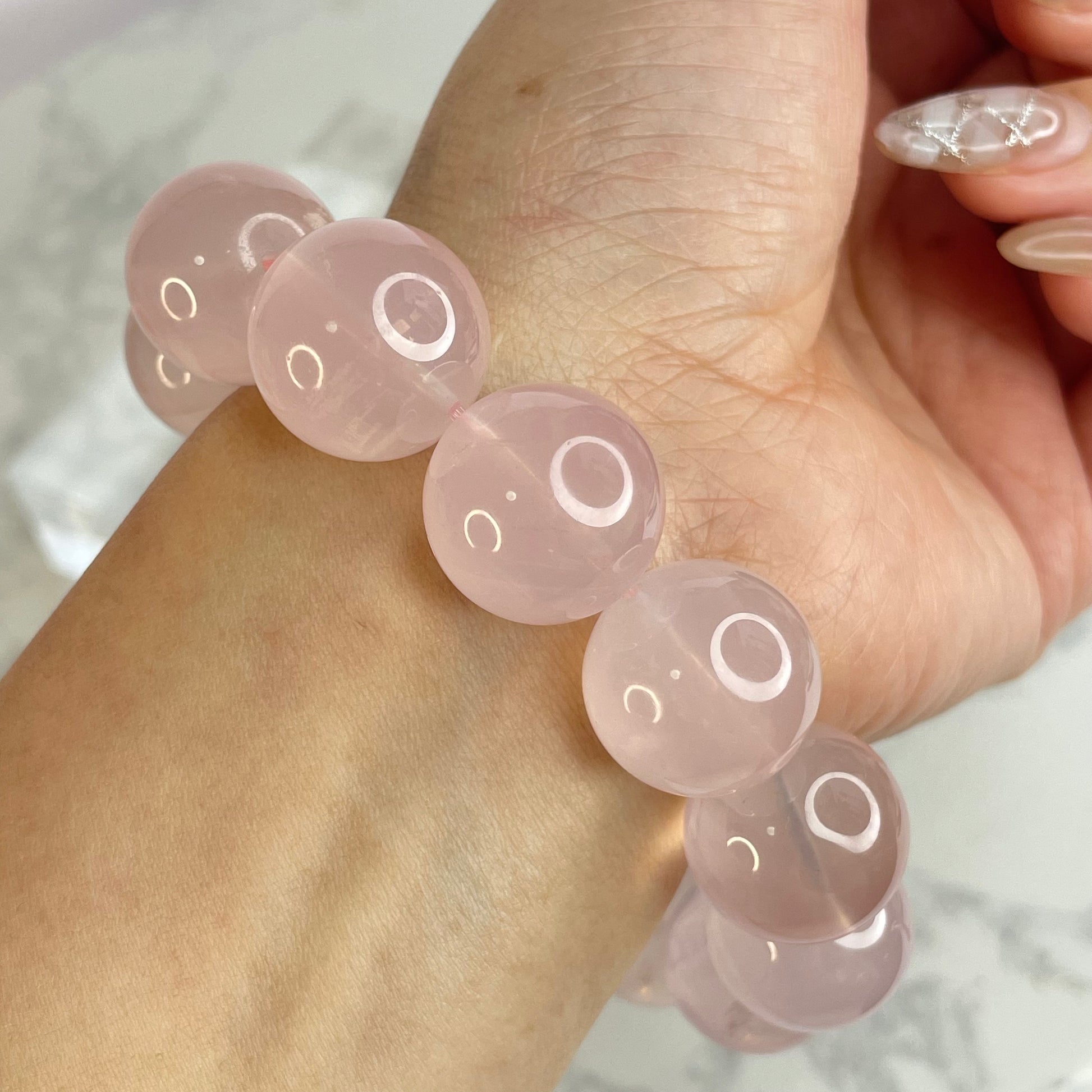 這條17mm馬達加斯加粉晶手串,珠子圓潤大氣、色澤粉嫩柔和,散發出溫暖細膩的療癒能量,是溫柔與力量兼具的愛之象徵。適合需要情感修復、自我價值提升或想增強桃花氣場的你。