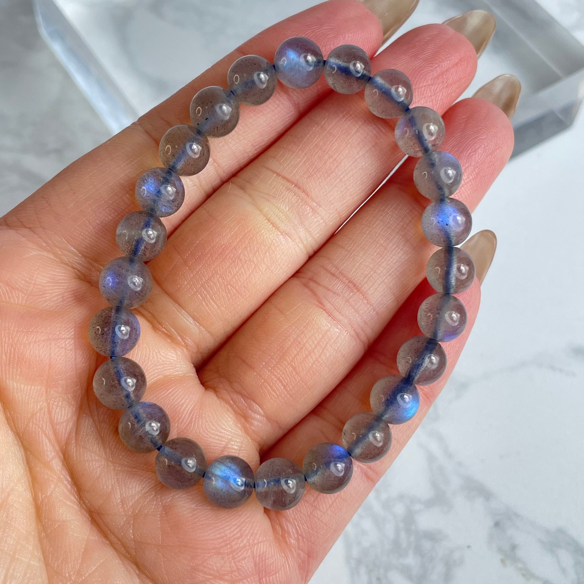 Moon Veil Glow” Natural Labradorite Bracelet 月影流光」天然拉長石手串 – 7mm(Madagascar 馬達加斯加)
