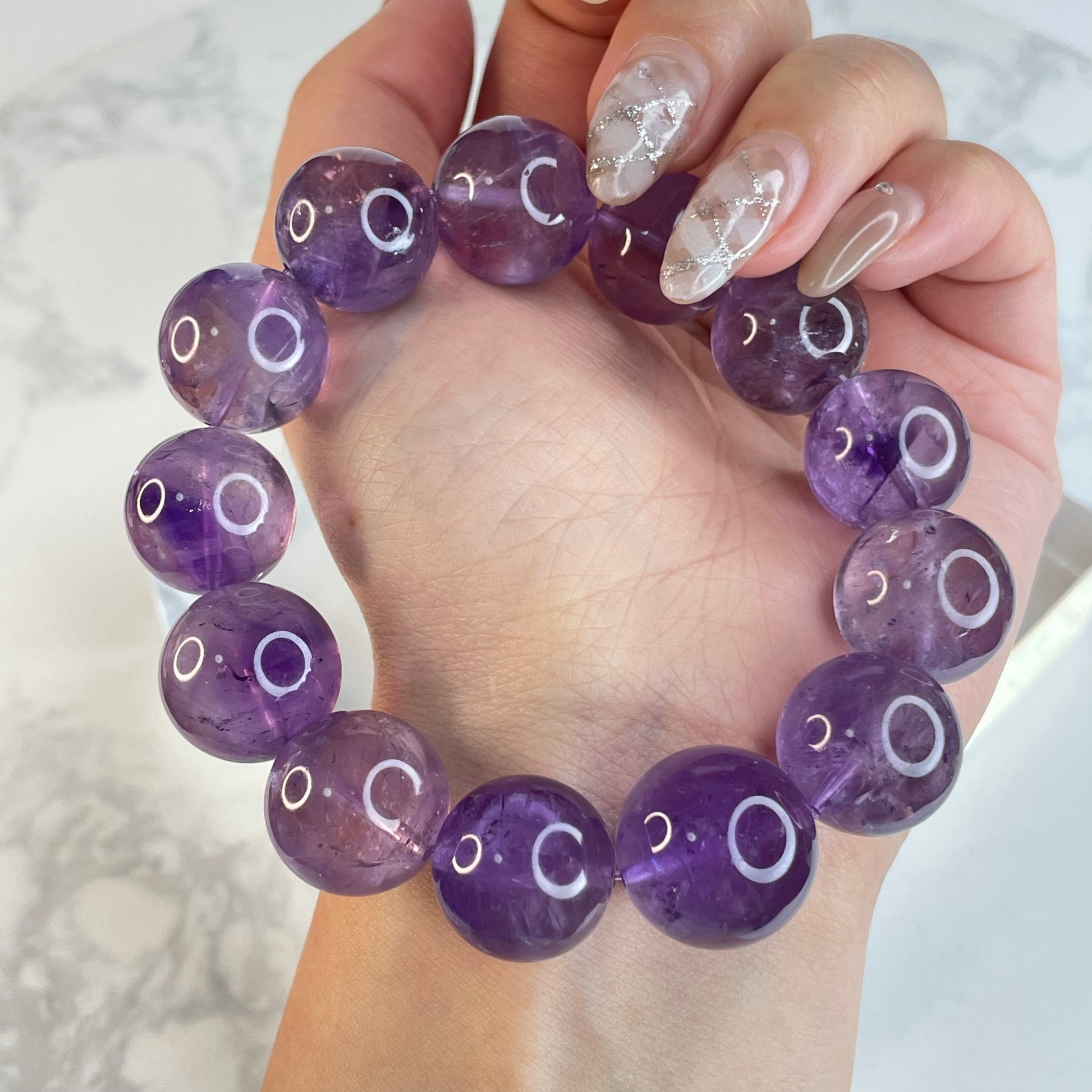 Natural Amethyst Bracelet 巴西天然紫水晶手串 – 16mm Beads | Suitable for 16cm Wrist