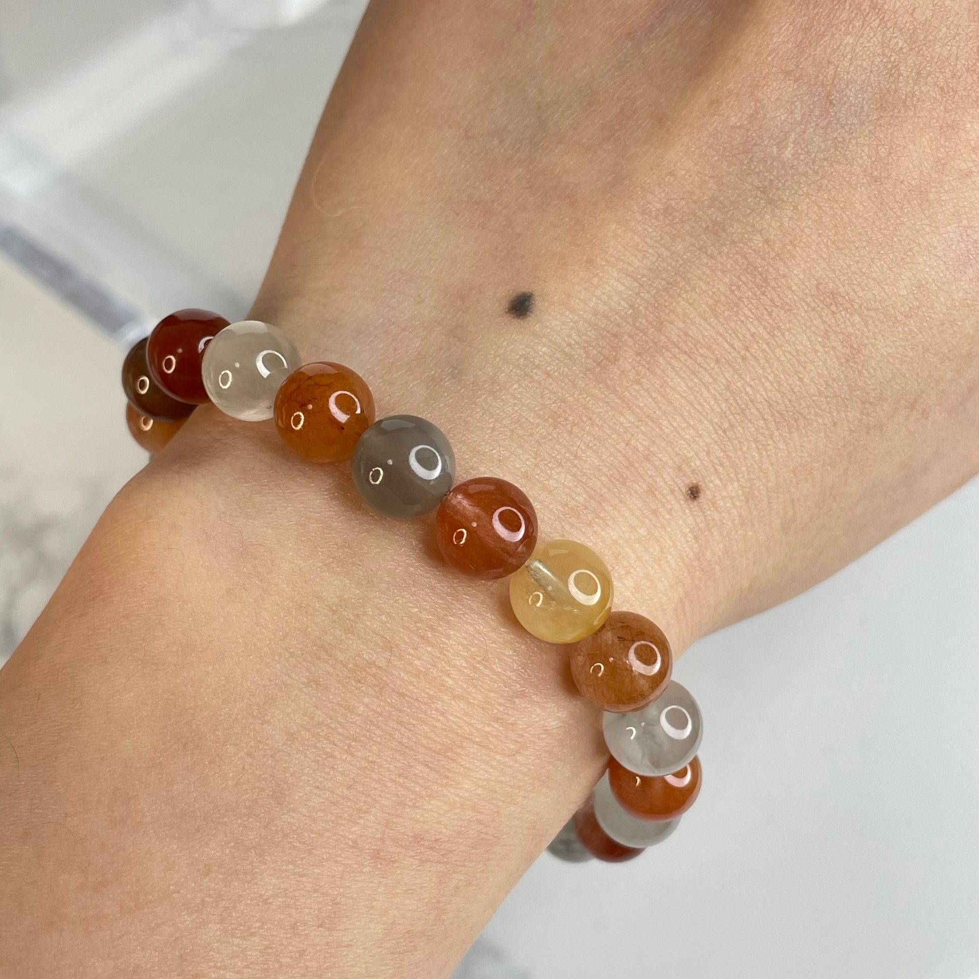 Bring color and energy into your life with this Rainbow Rutile Quartz bracelet. Featuring 8mm round beads in shades of red, gold, grey, and milky white, this radiant crystal—often called “Rabbit Hair Quartz” in Chinese—contains fine rutile inclusions that shimmer like threads of light. Believed to balance emotions and amplify energy, this bracelet is a beautiful talisman for those seeking harmony, vitality, and clarity.