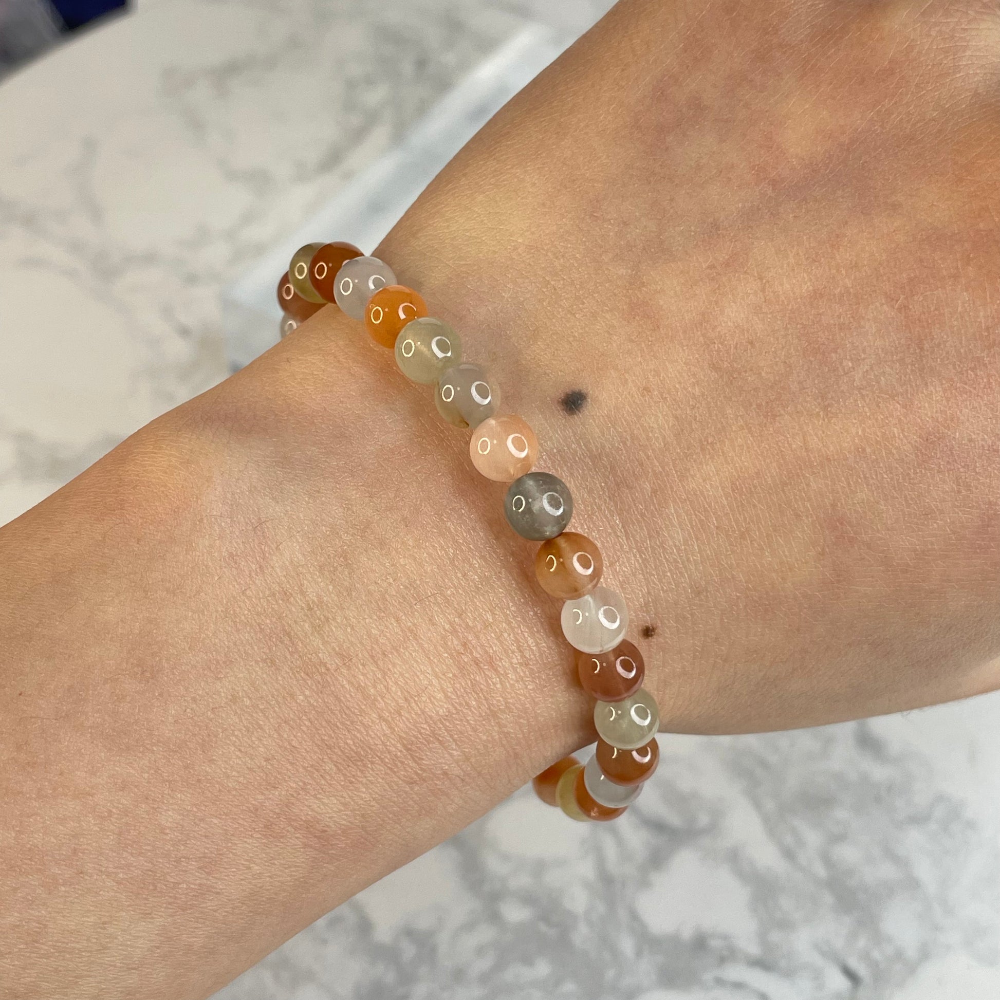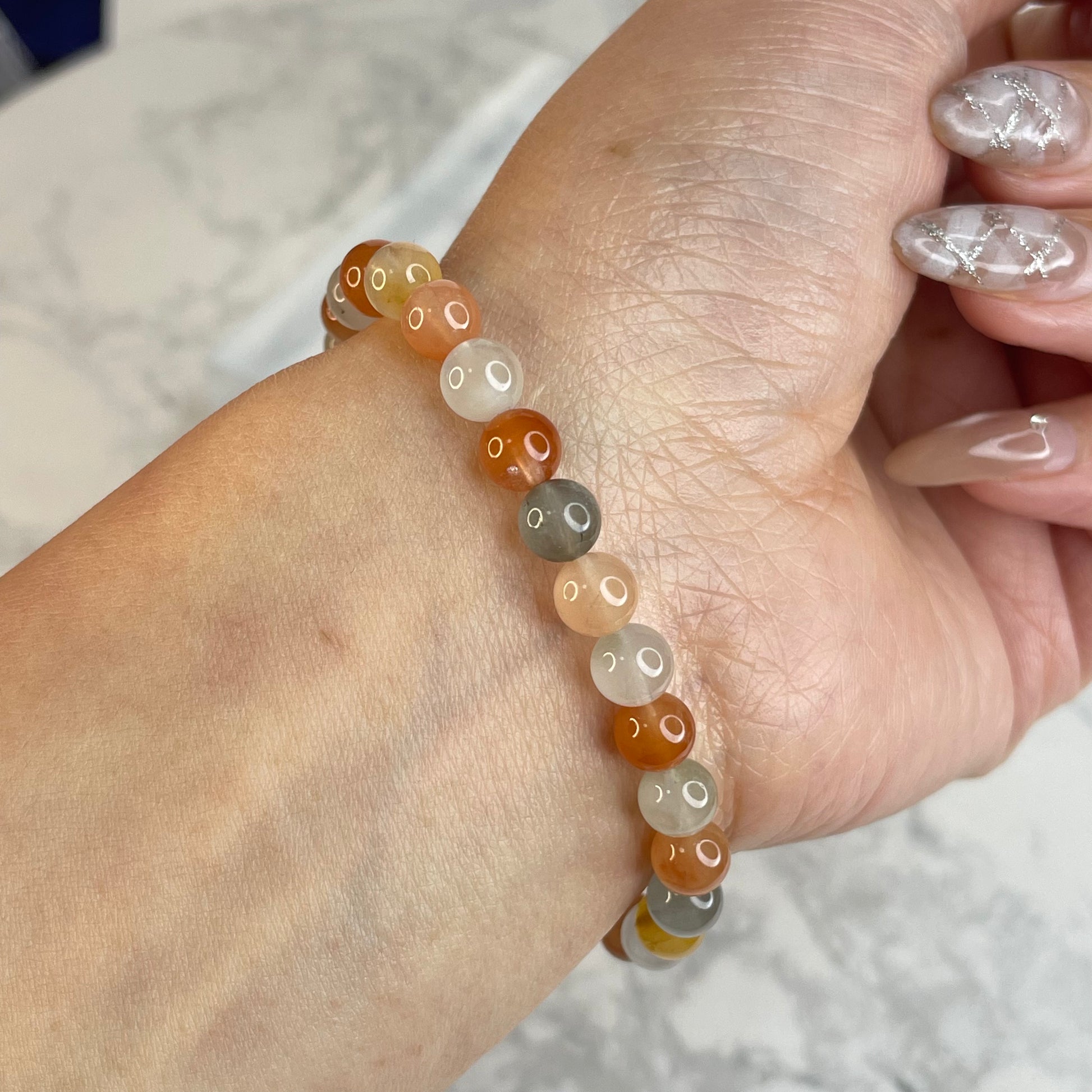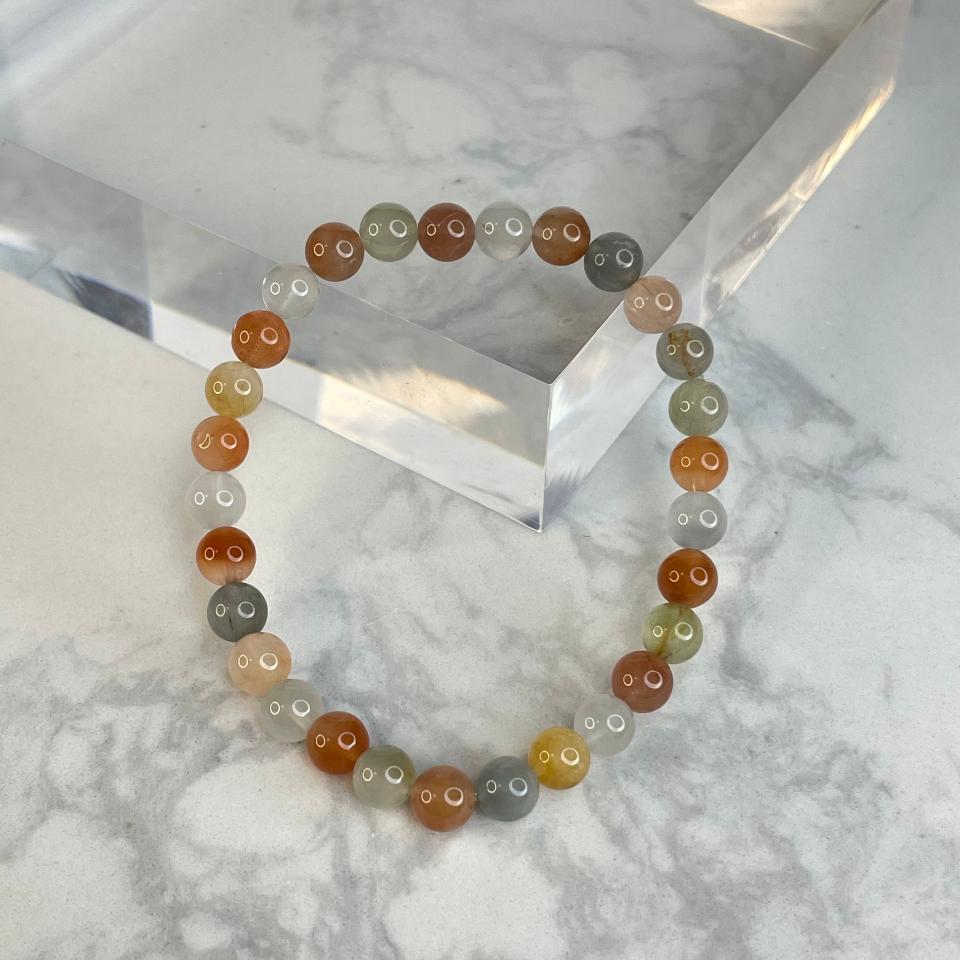 Tiny beads, big charm! This 6mm Rainbow Rutile Quartz bracelet is like a pastel candy mix for your soul. Soft and shimmering in hues of orange, peach, grey, honey, and snow white, these delicate beads are filled with dreamy rutile threads—just like fine rabbit hair under sunlight. Lightweight and easy to stack, it’s perfect for daily wear and layering with your favorite bracelets.