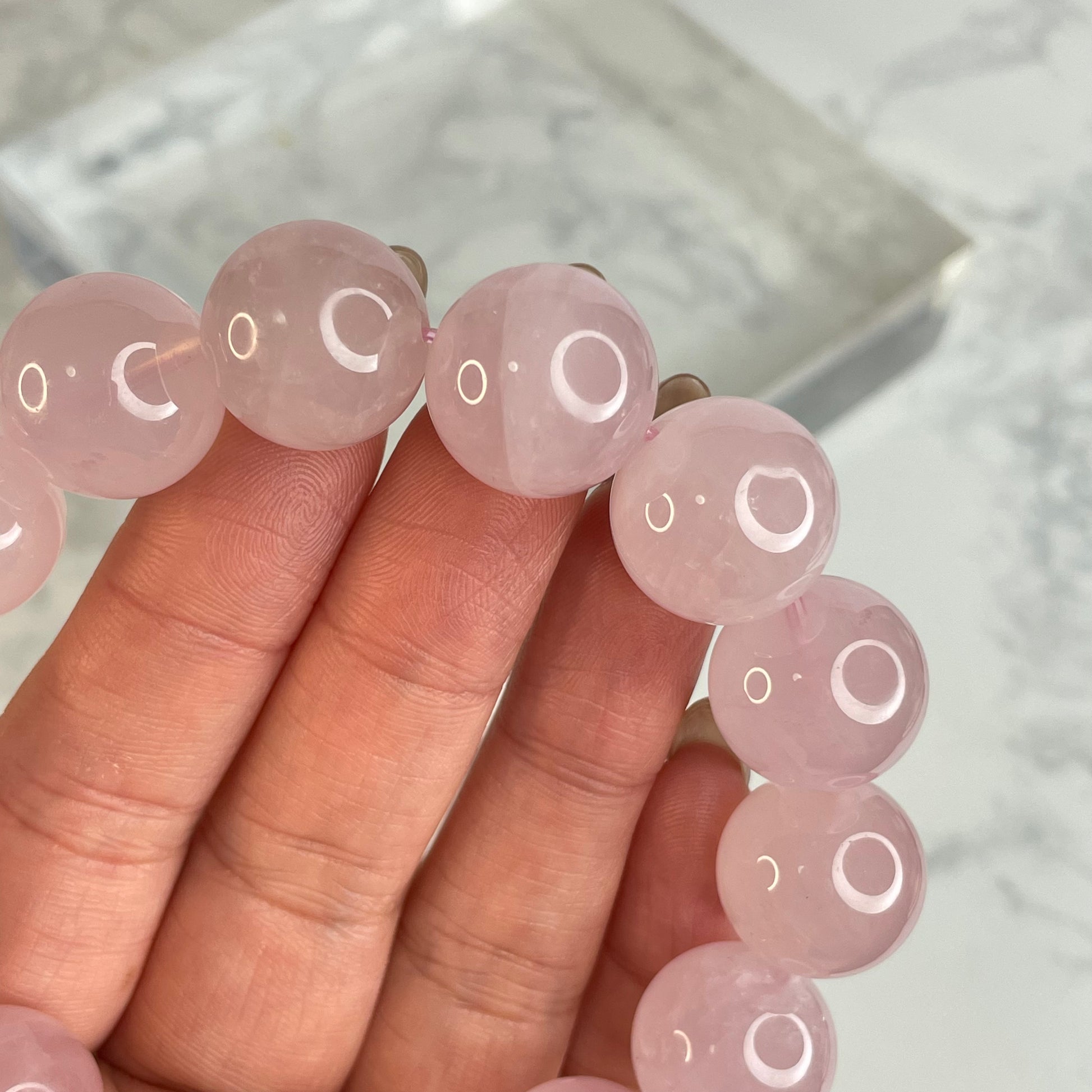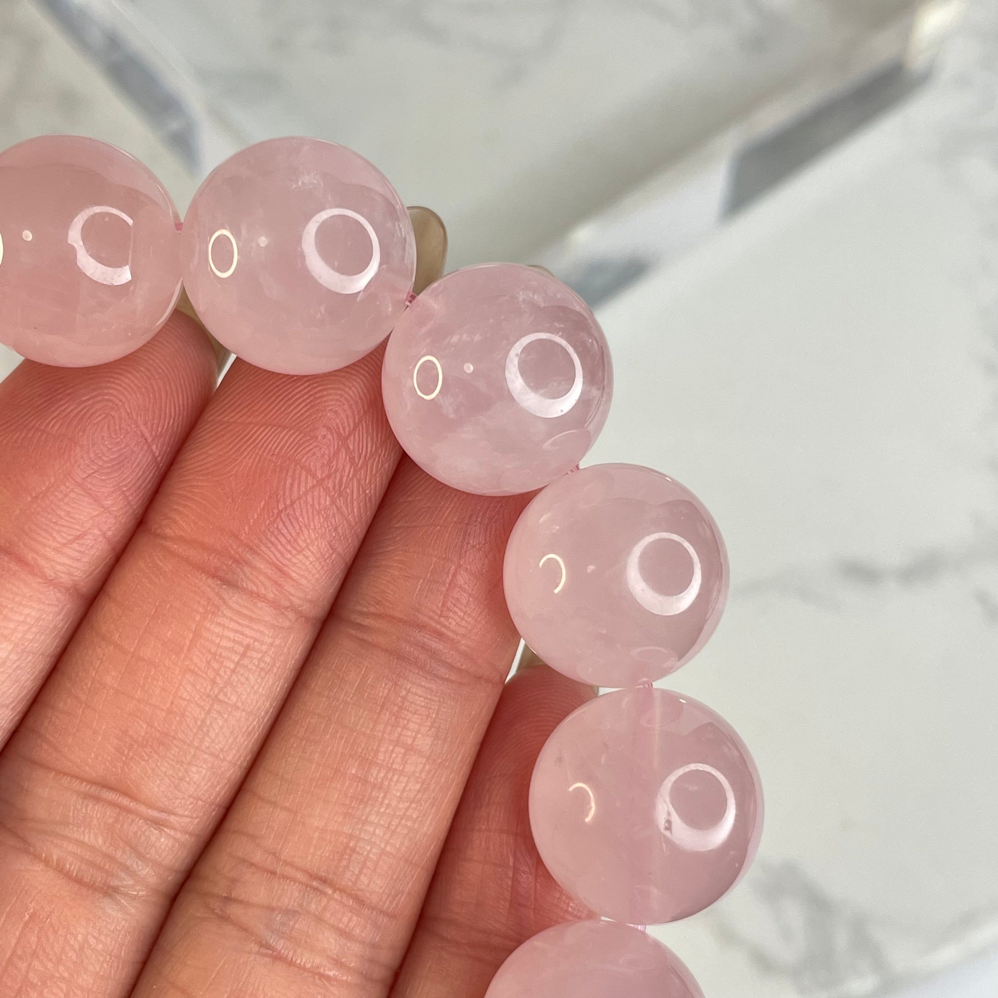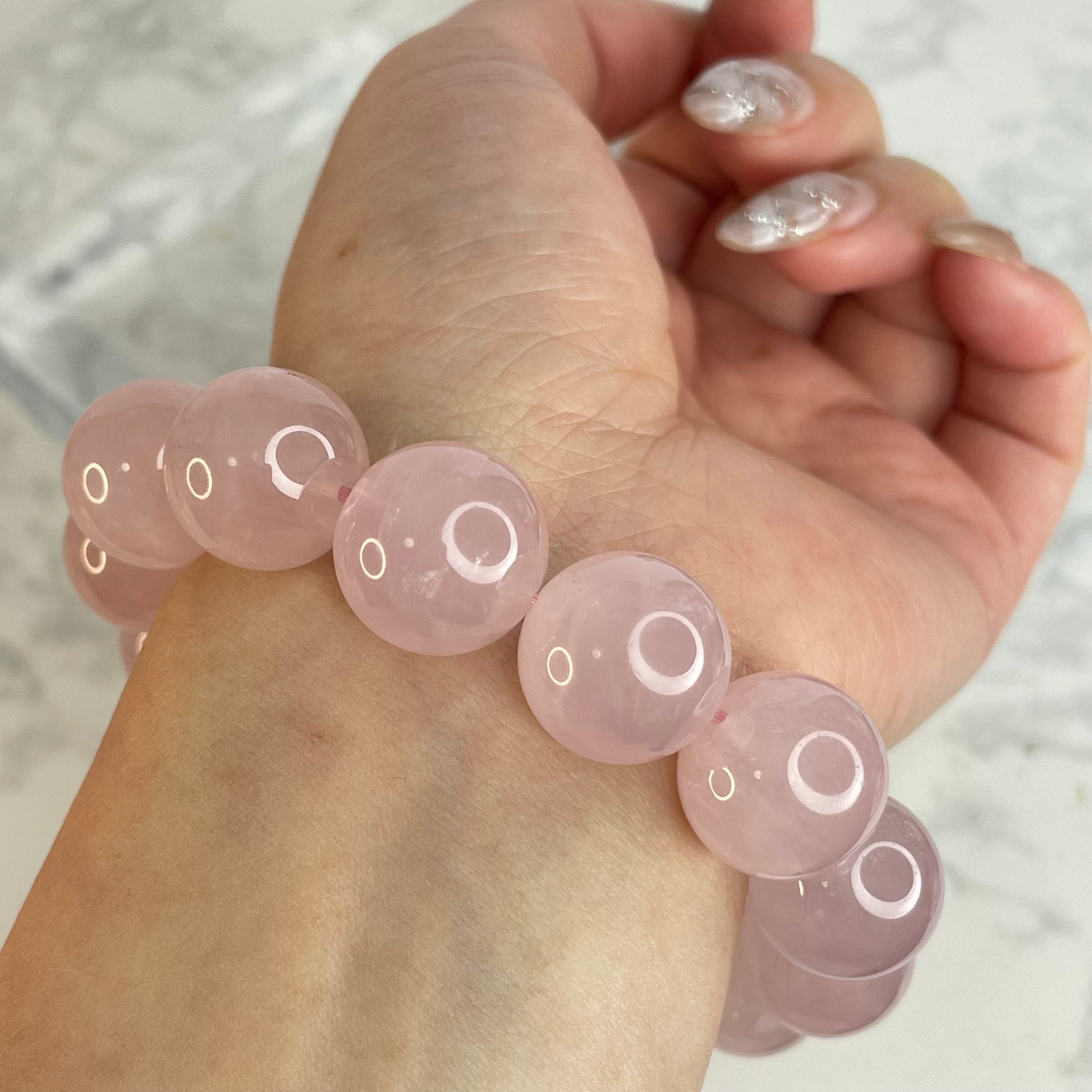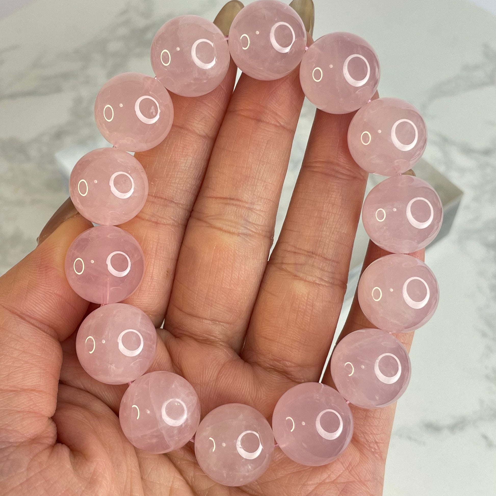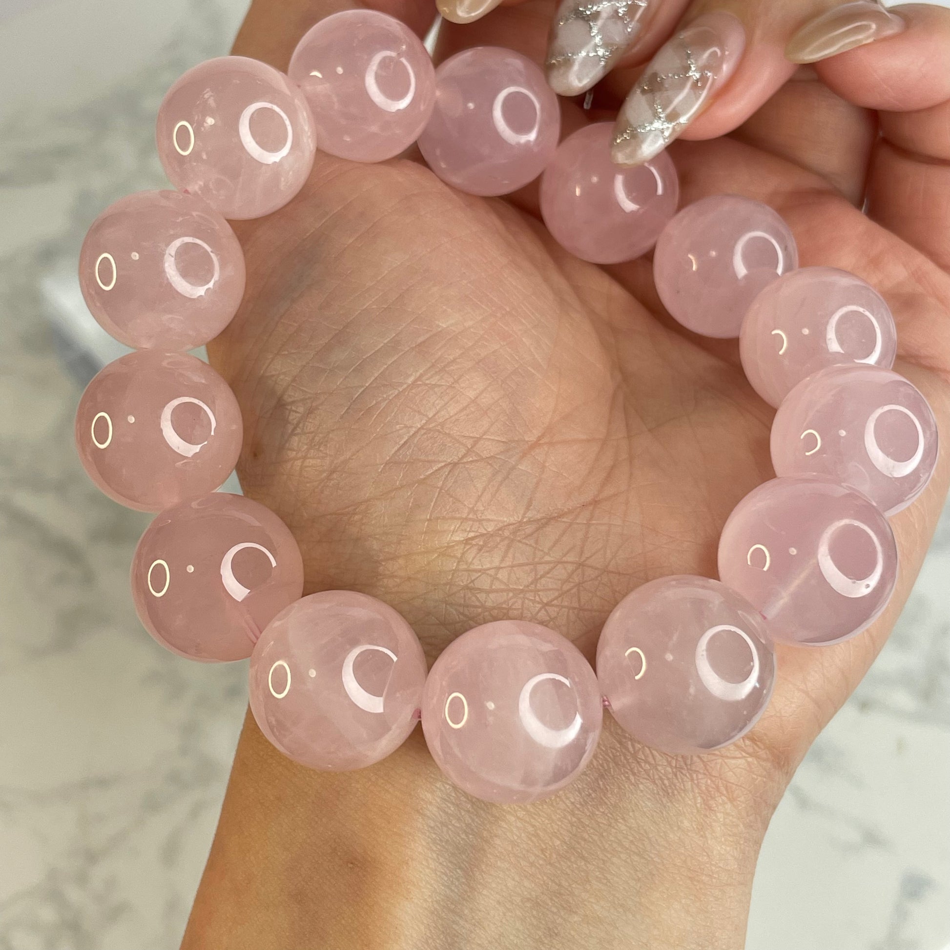 Rose Quartz 馬粉晶手串 – 15mm(原產地:馬達加斯加)