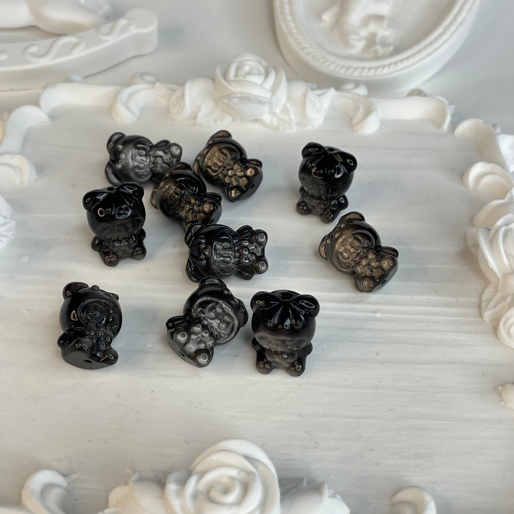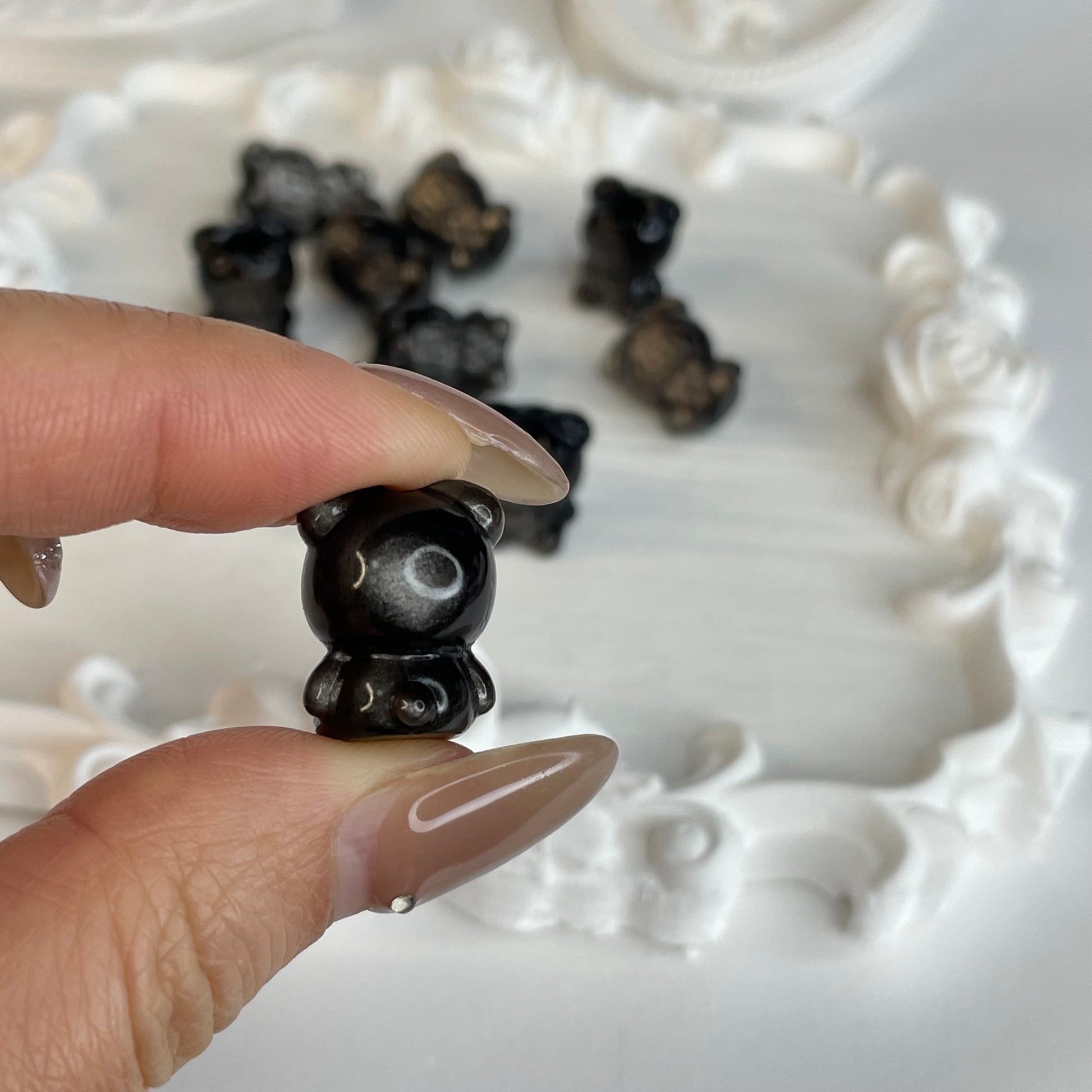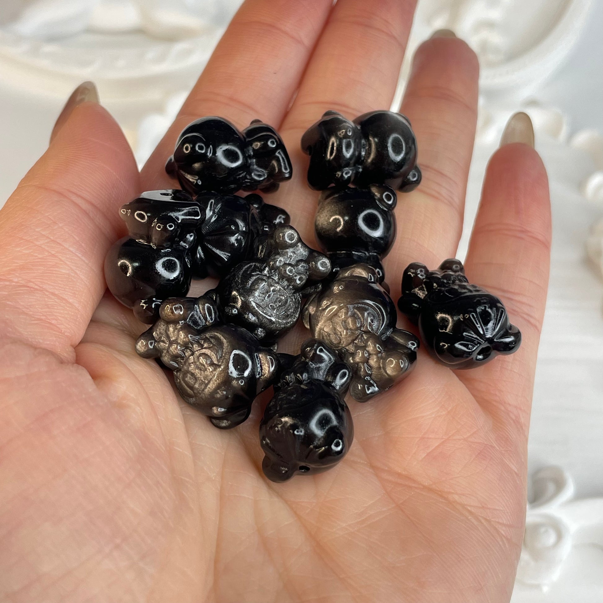 Each bead is crafted with care, featuring a polished surface and shimmering silver flash unique to obsidian. These little bears are perfect as centerpieces for DIY bracelets, necklaces, or amulets.