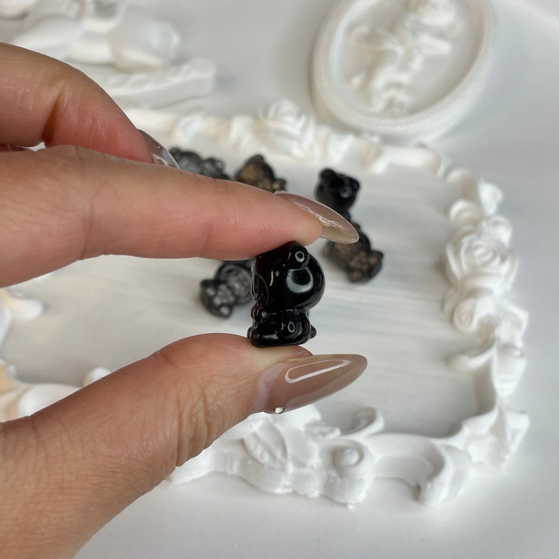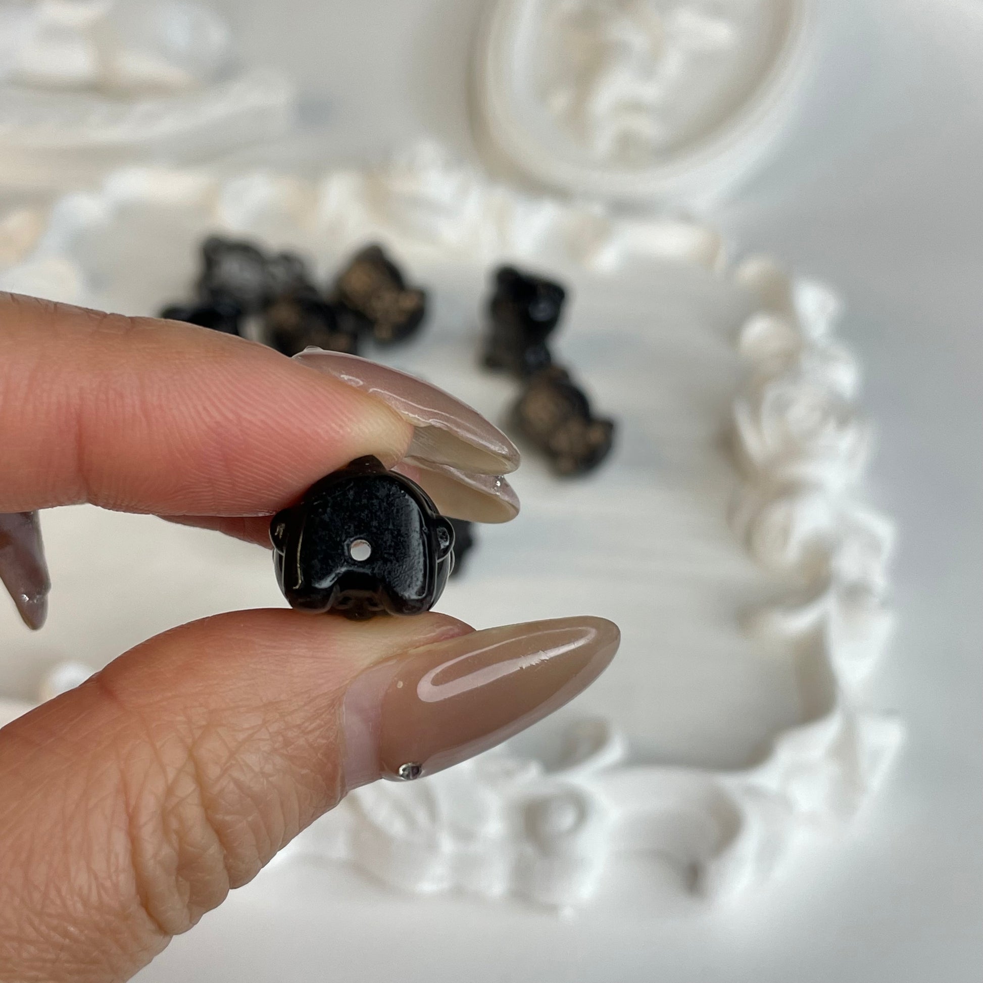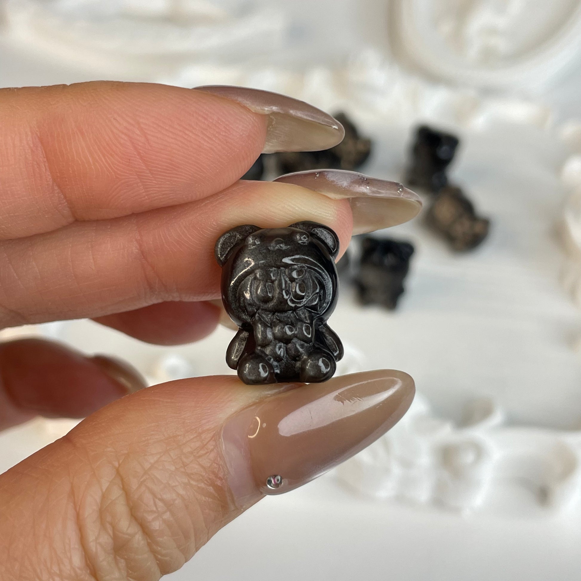 Each bead is crafted with care, featuring a polished surface and shimmering silver flash unique to obsidian. These little bears are perfect as centerpieces for DIY bracelets, necklaces, or amulets.