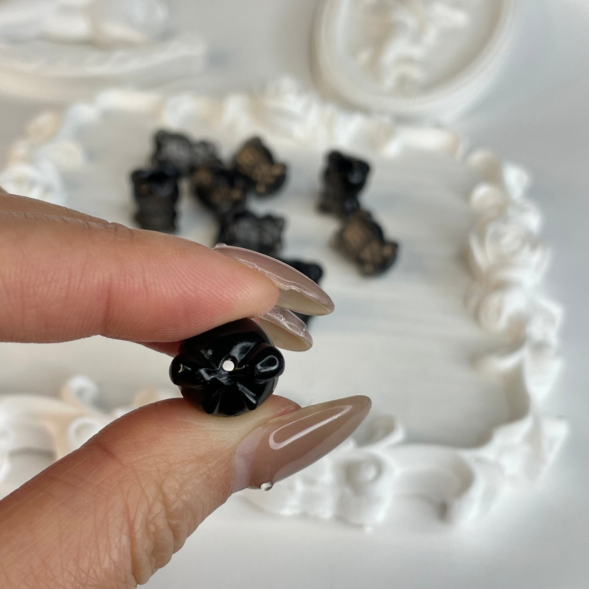 Set of 10 – Silver Obsidian Bear Carving Beads (18mm) | Natural Crystal DIY Charms