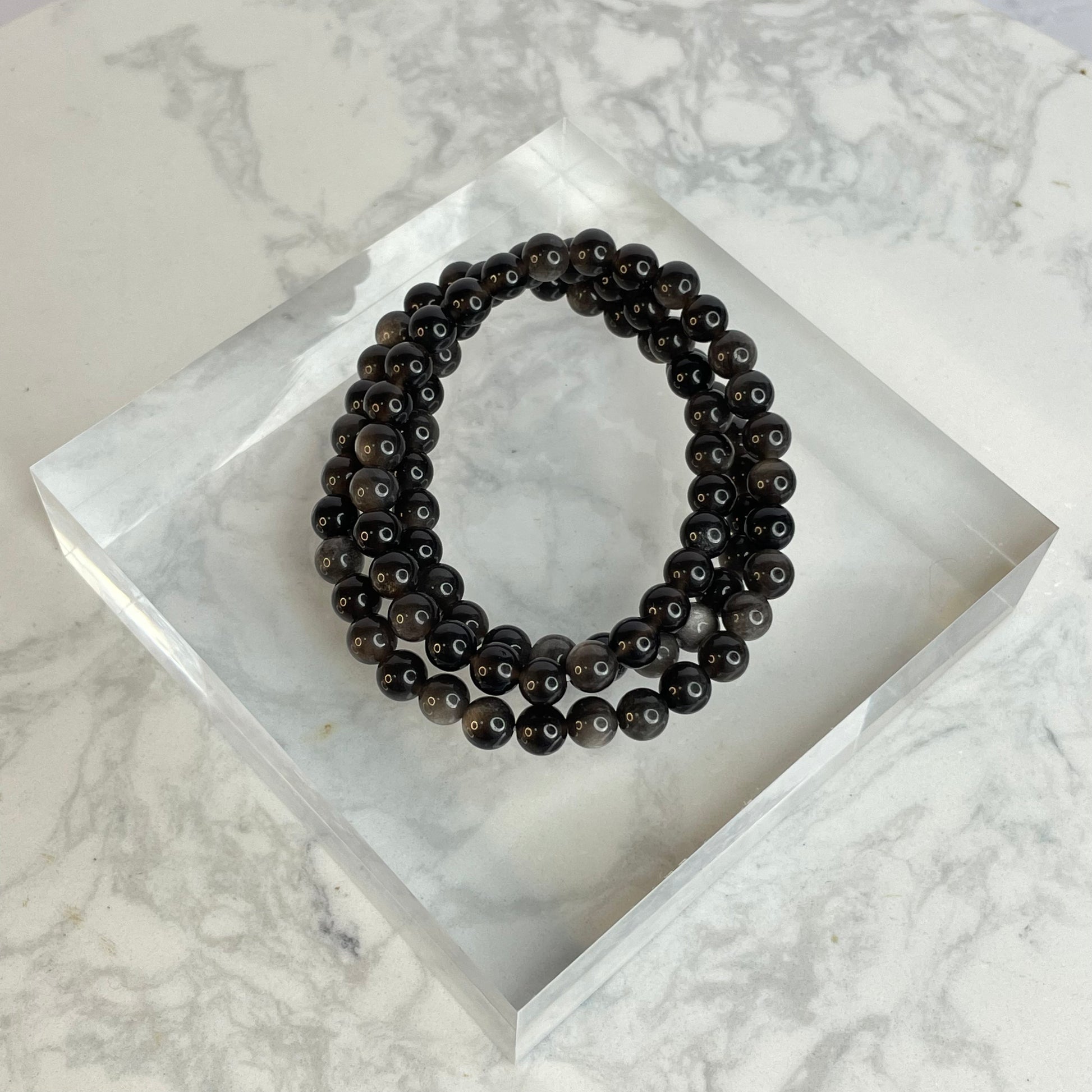 Silver Sheen Obsidian Wrap Bracelet 銀曜石三圈手串/項鍊 – 6mm(Mexico 墨西哥)