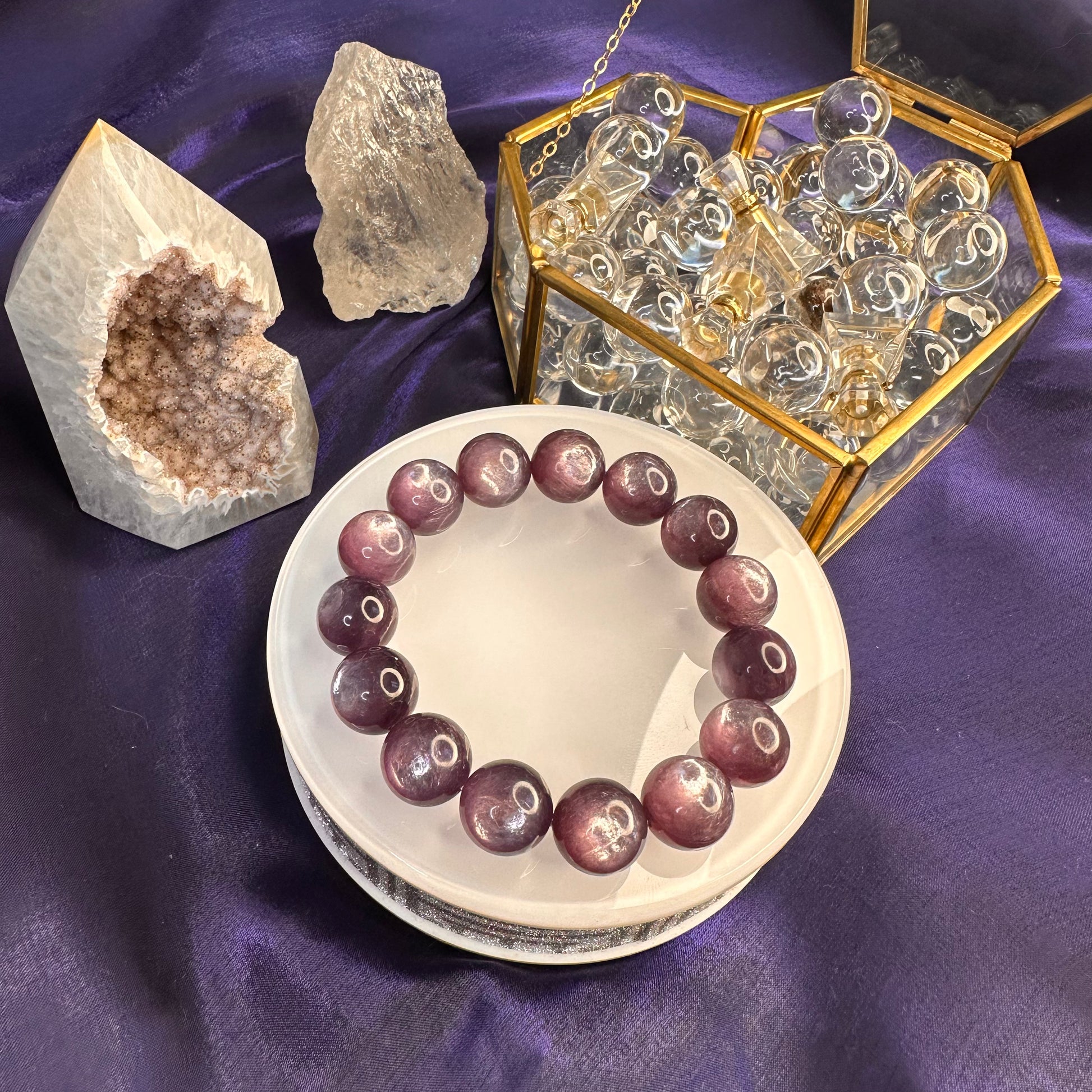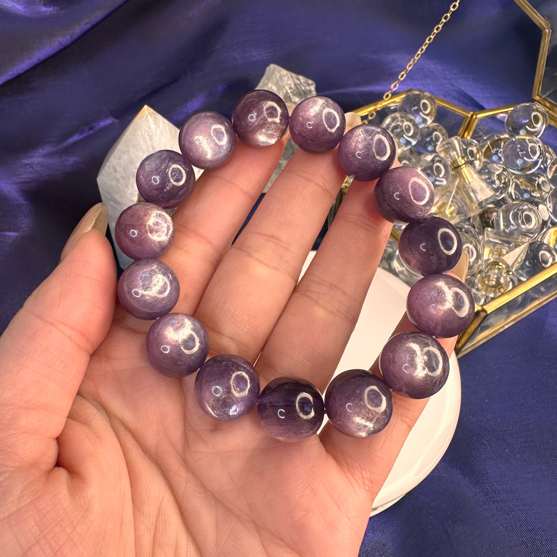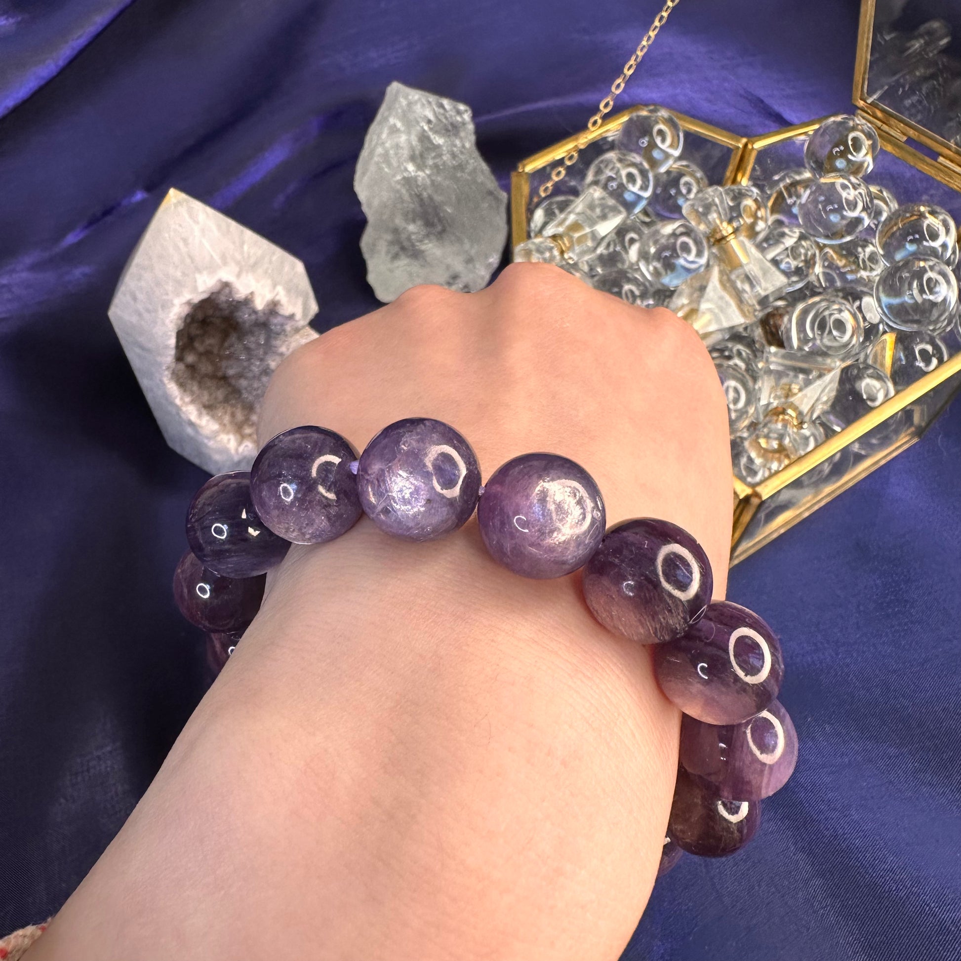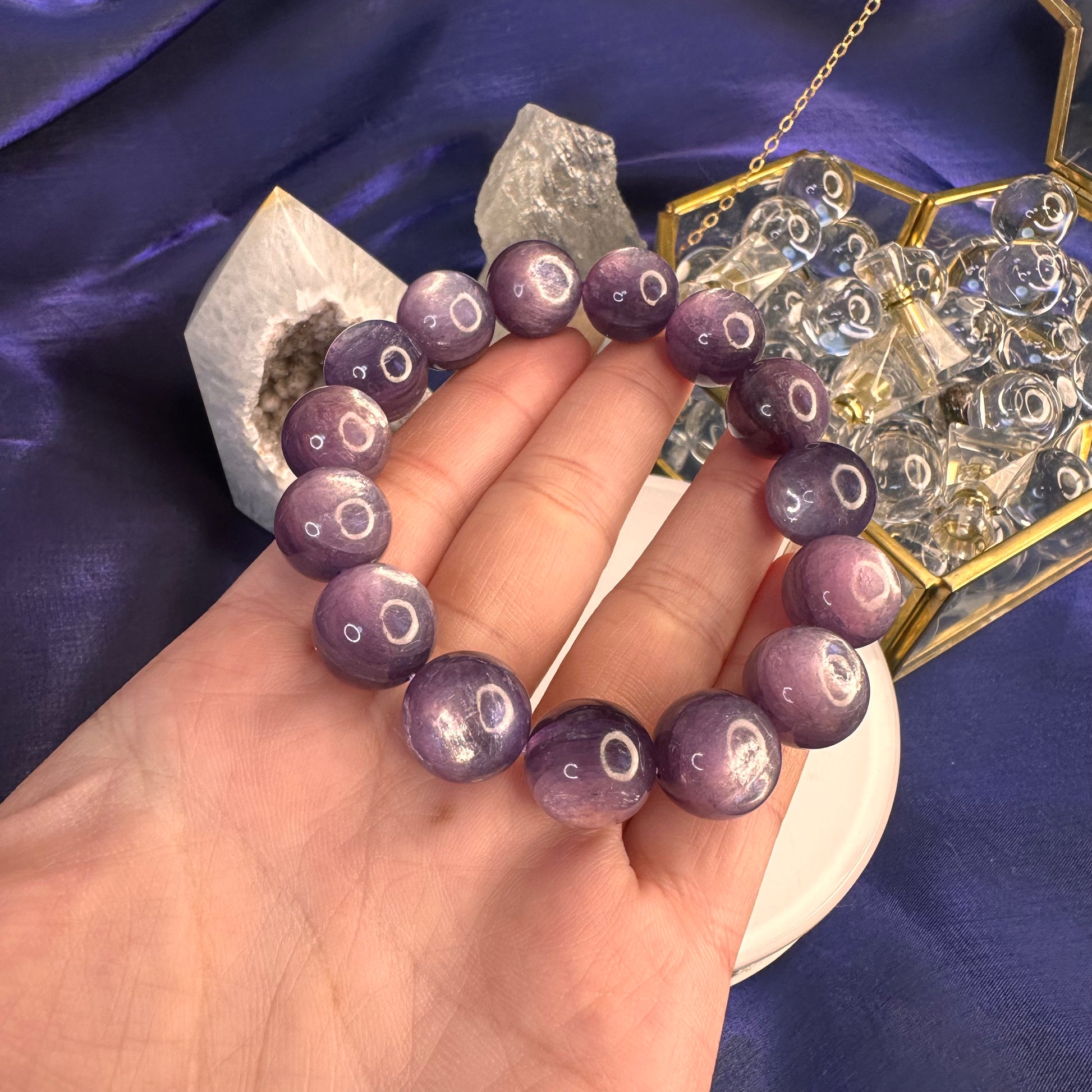 Natural Lepidolite Bracelet – 14mm Calming Purple Mica Crystal for Emotional Balance