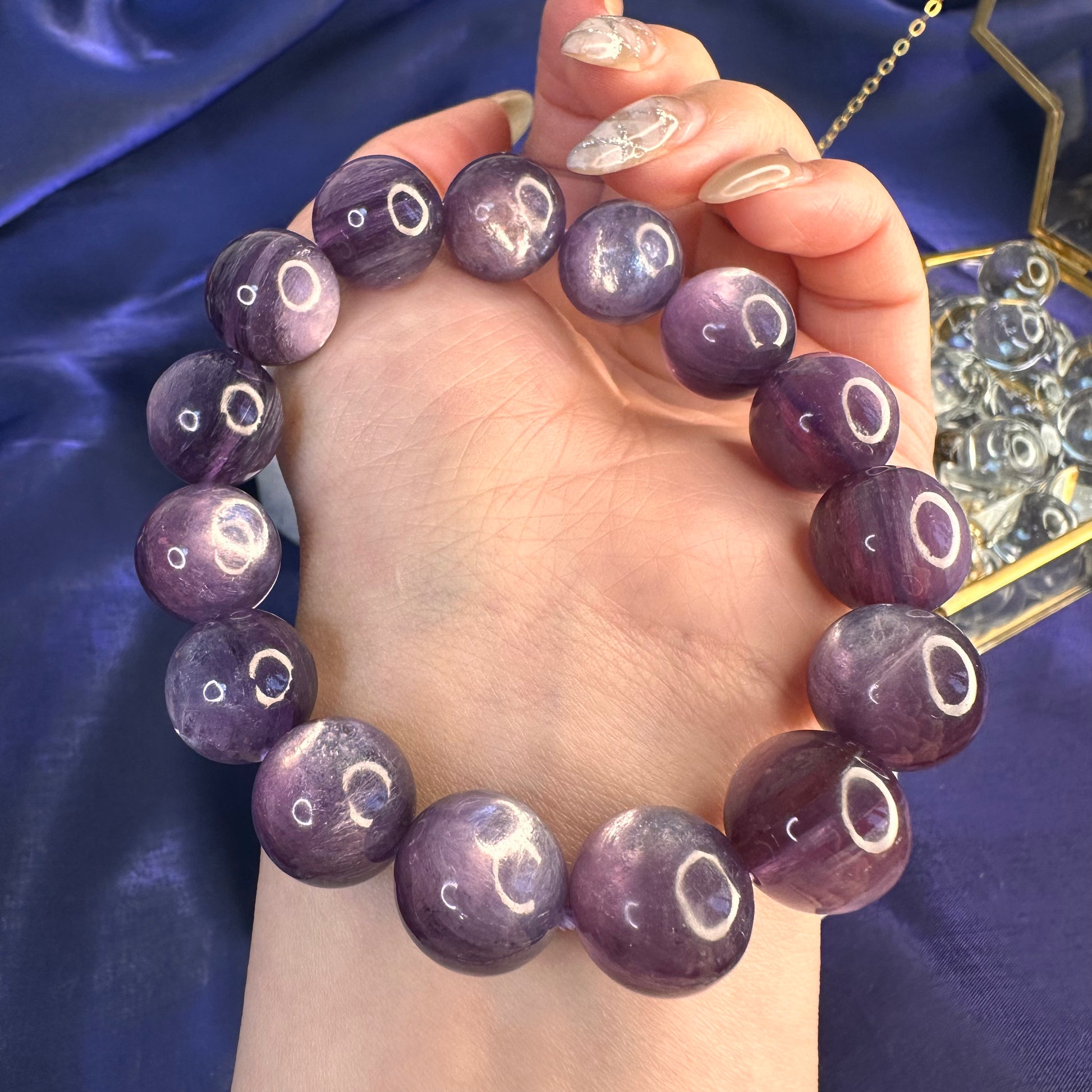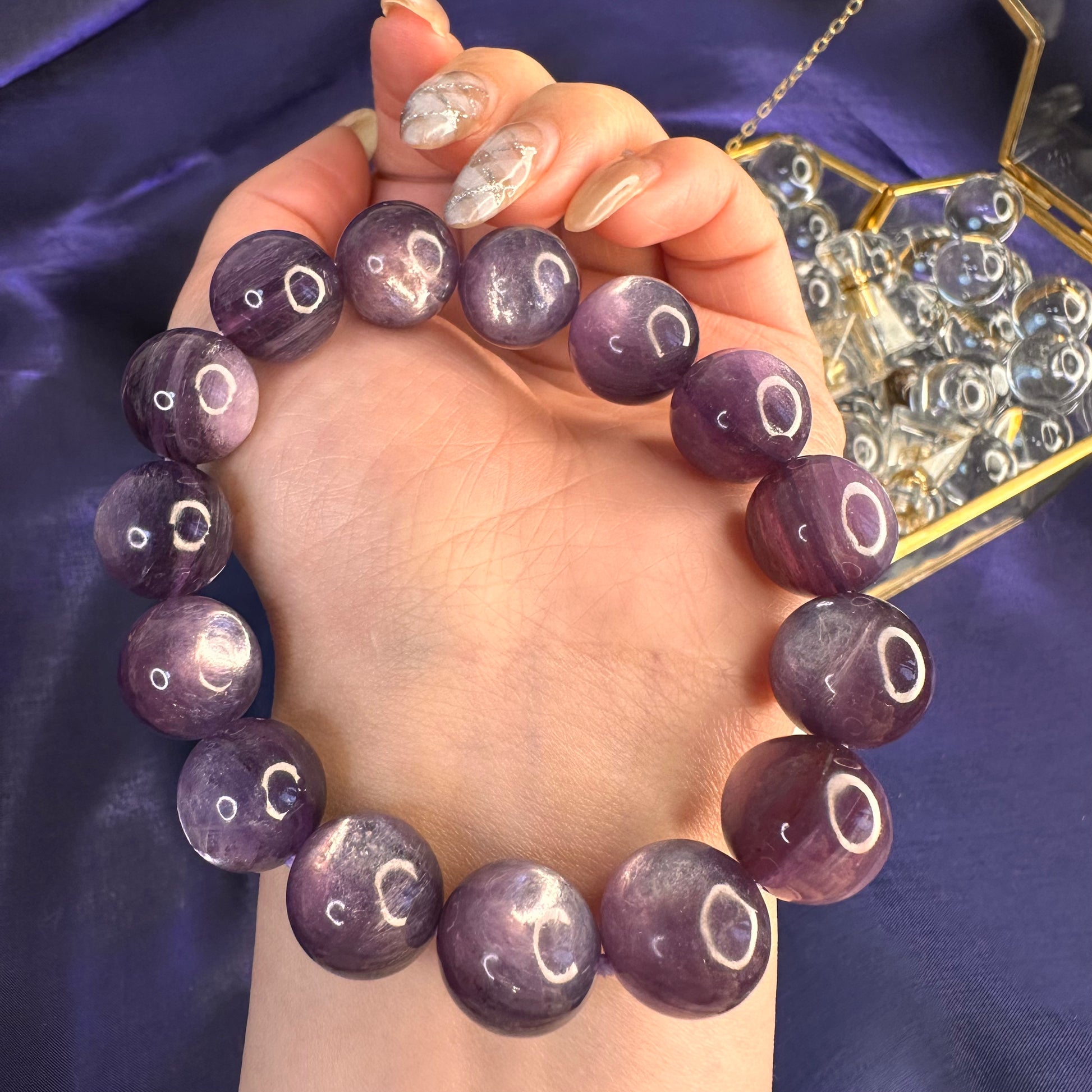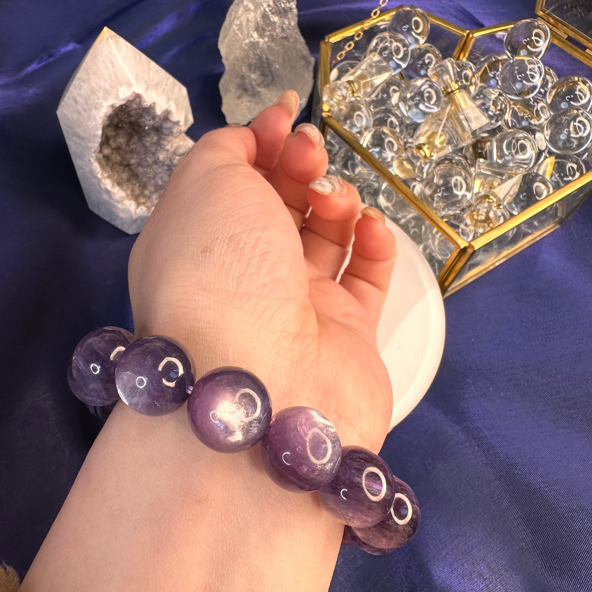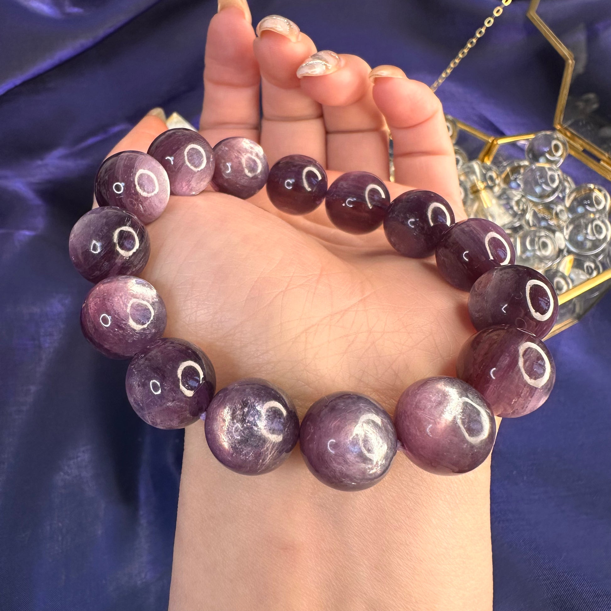 Natural Lepidolite Bracelet – 14mm Calming Purple Mica Crystal for Emotional Balance