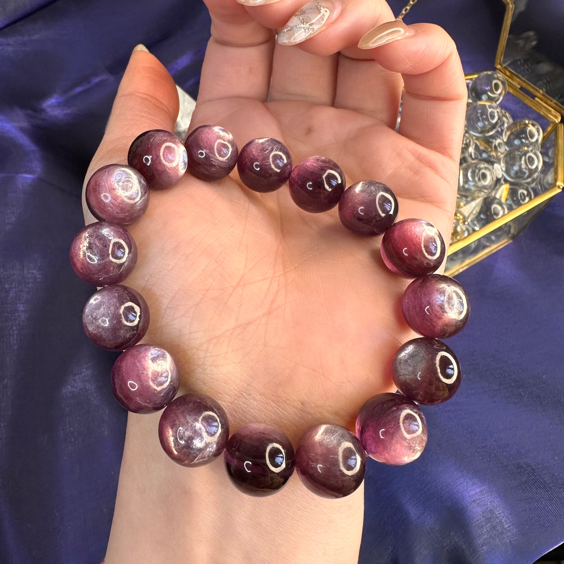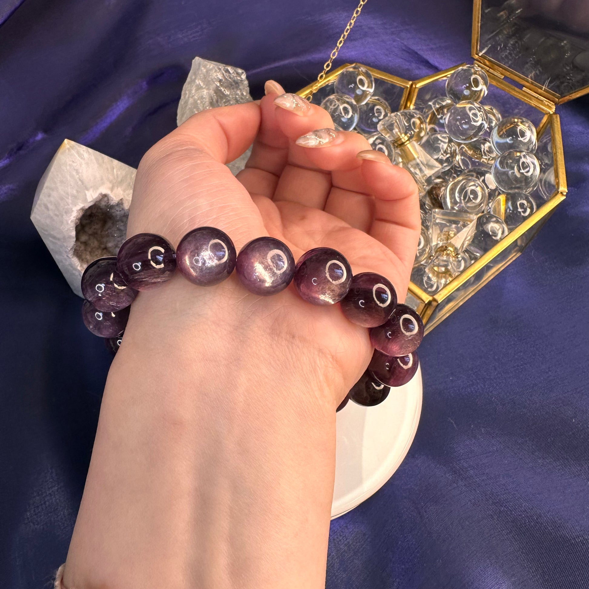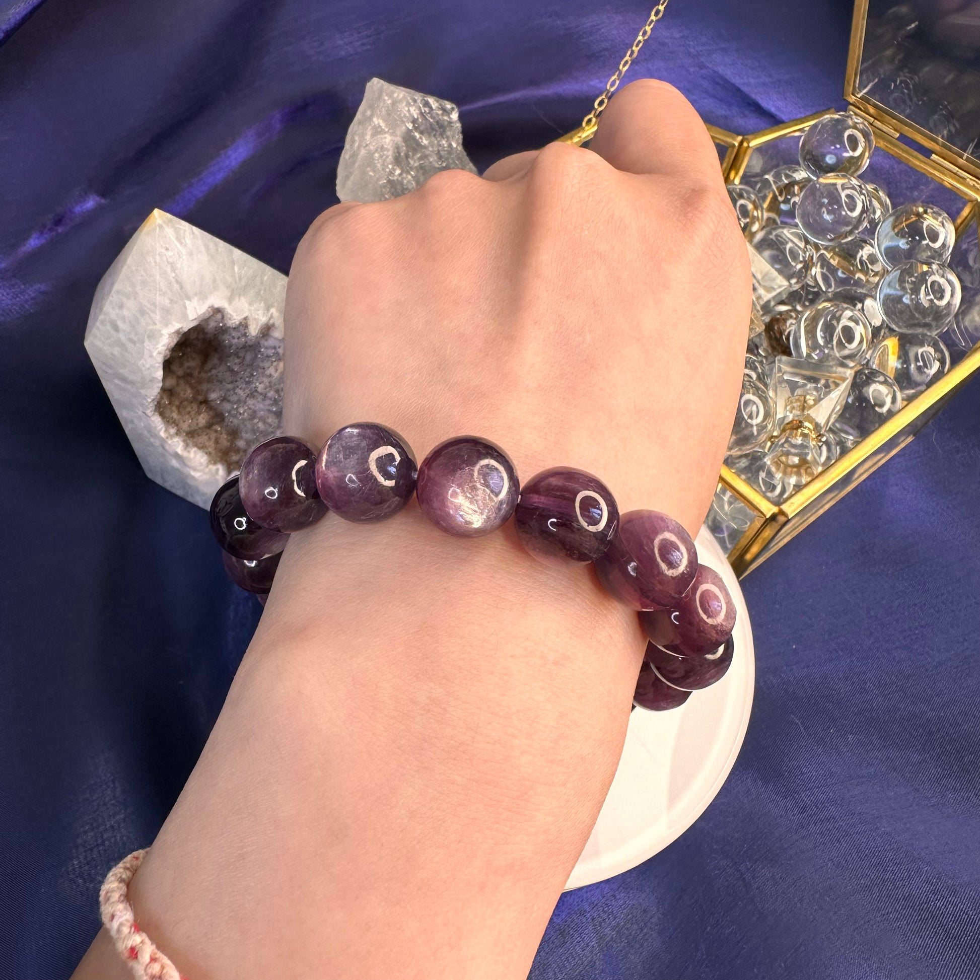 Natural Lepidolite Bracelet – 13mm Calming Purple Mica Crystal for Emotional Balance