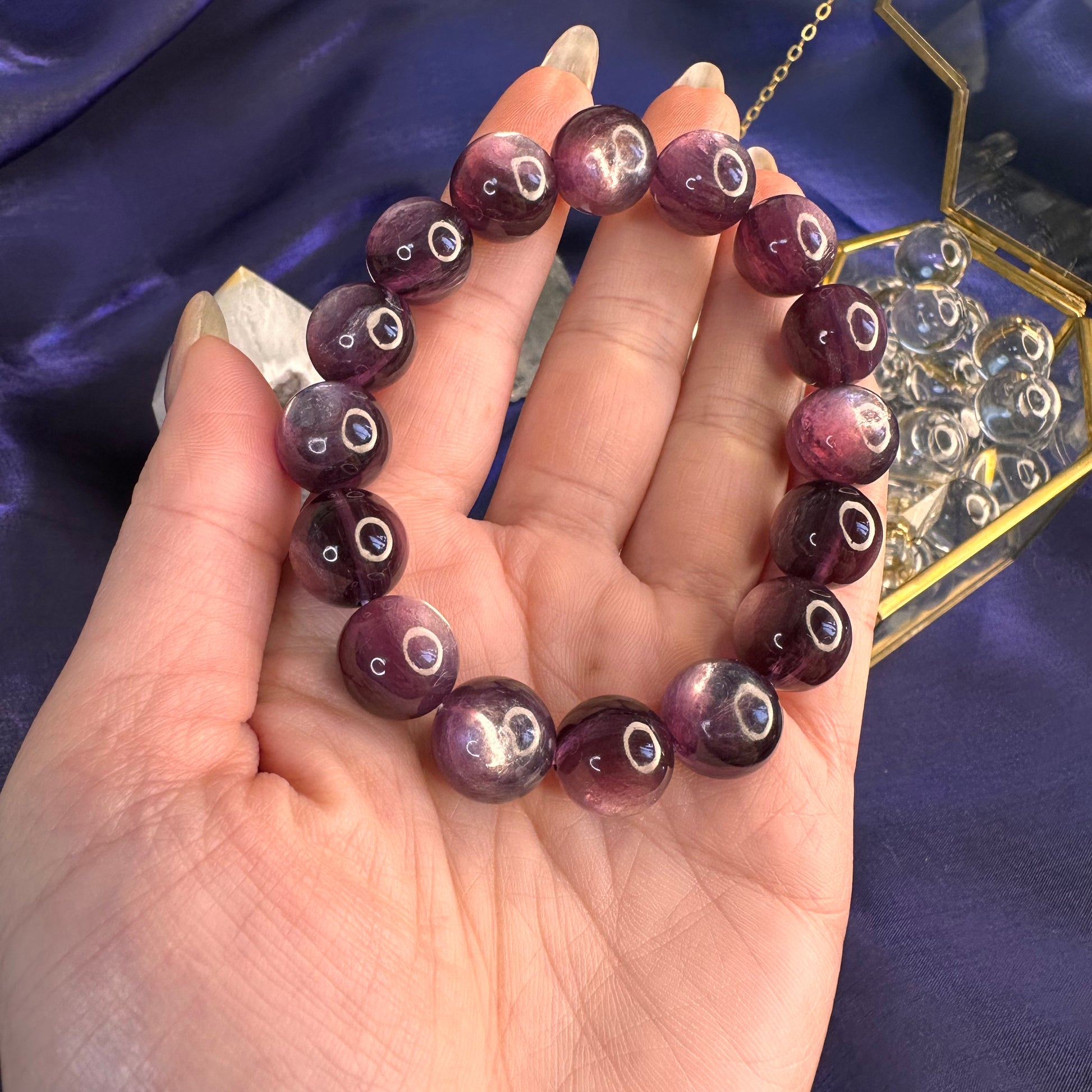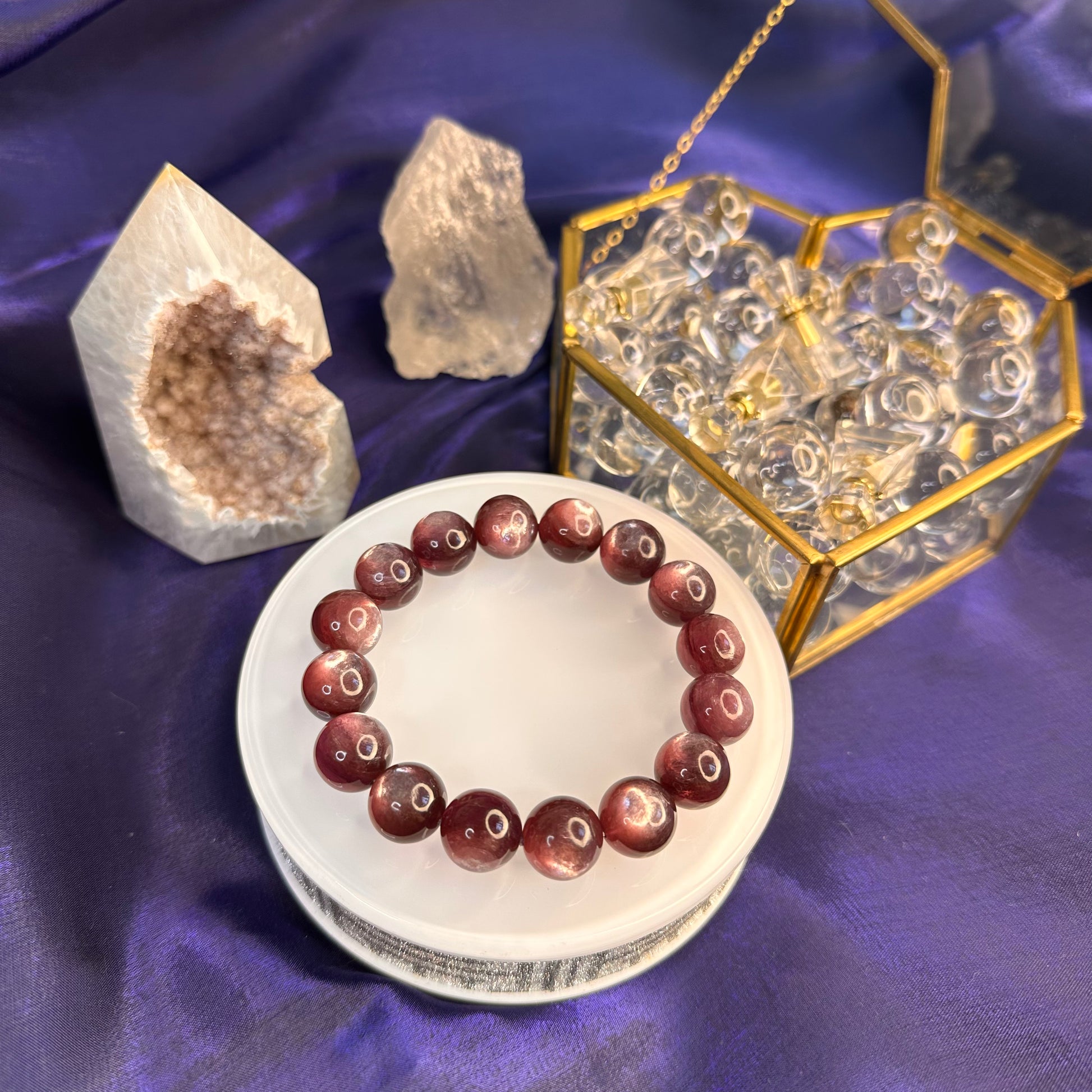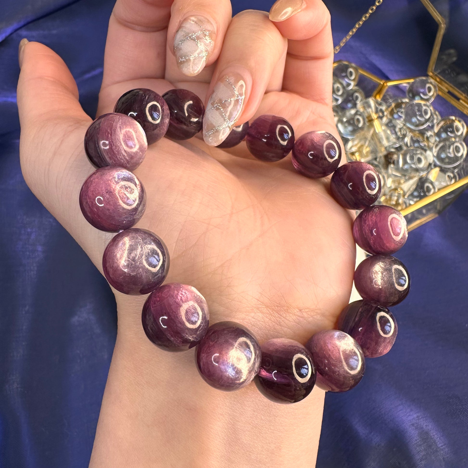 Natural Lepidolite Bracelet – 13mm Calming Purple Mica Crystal for Emotional Balance